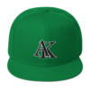 This snapback hat is perfect for any casual outfit. Embroidered with a black Alaska abbreviation, it is available in several different color schemes to match your style. It features a classic six-panel design with a flat brim that has a subtle gray color underneath and an adjustable strap in the back.