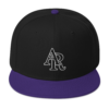 This snapback hat is perfect for any casual outfit. Embroidered with a black Arkansas abbreviation, it is available in several different color schemes to match your style. It features a classic six-panel design with a flat brim that has a subtle gray color underneath and an adjustable strap in the back.