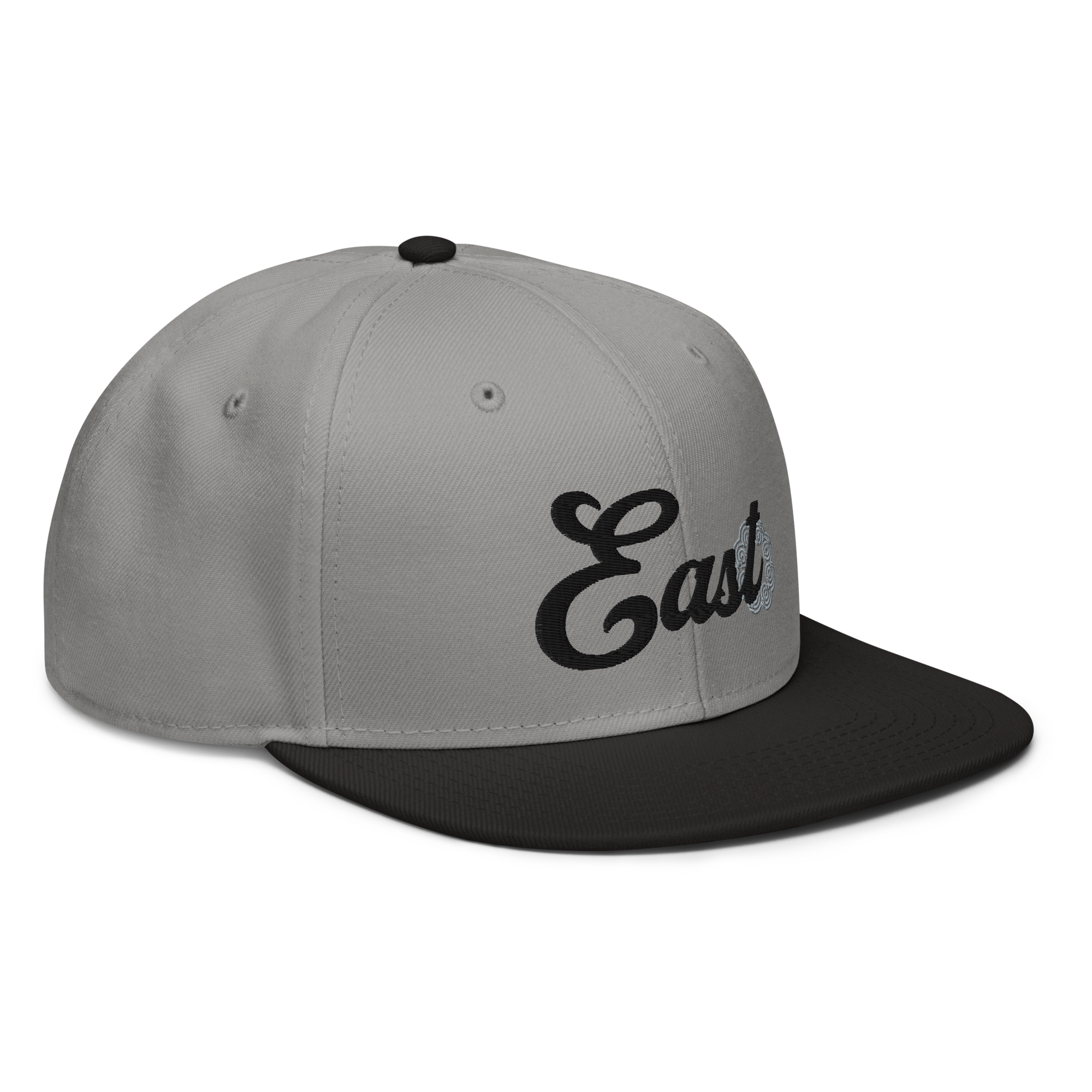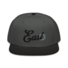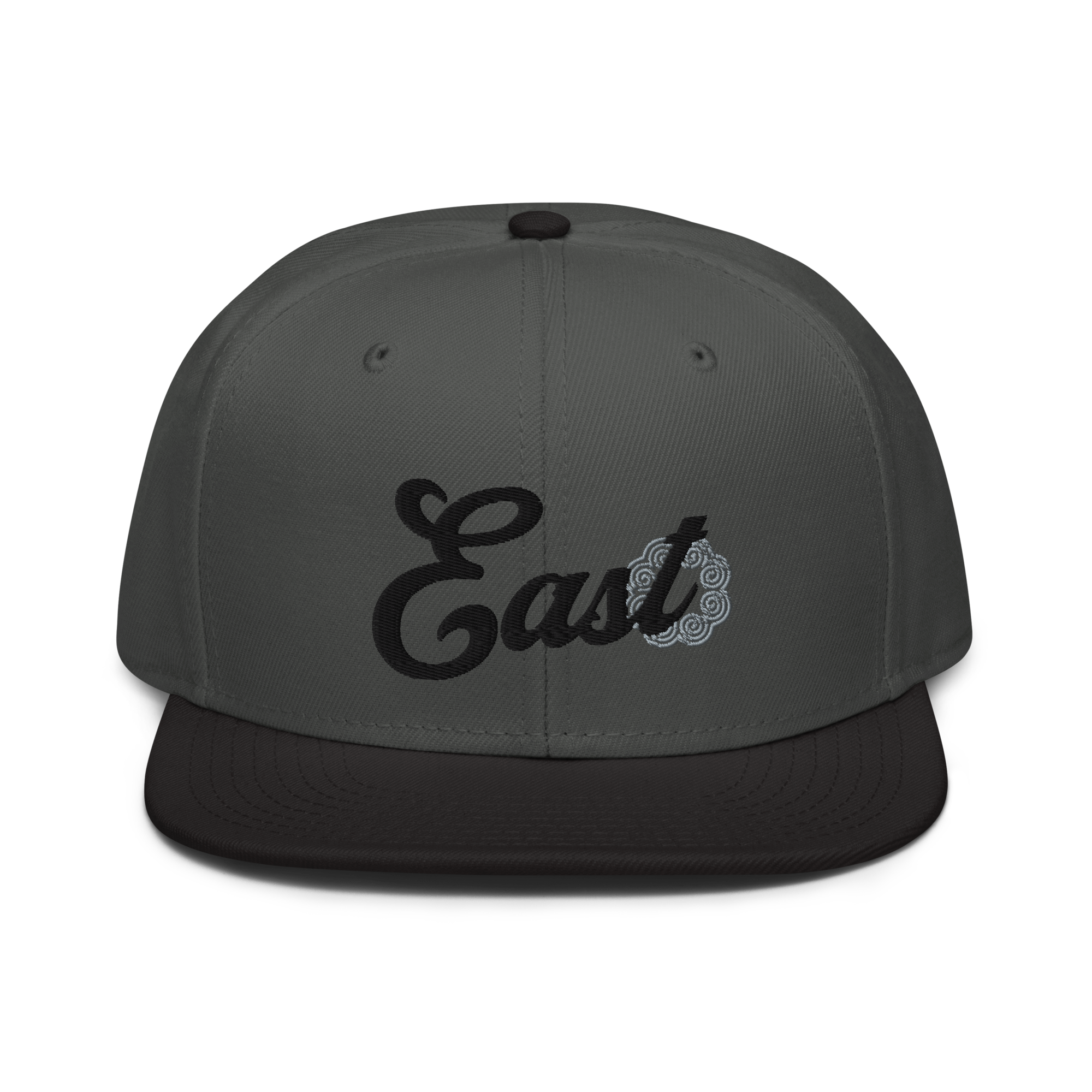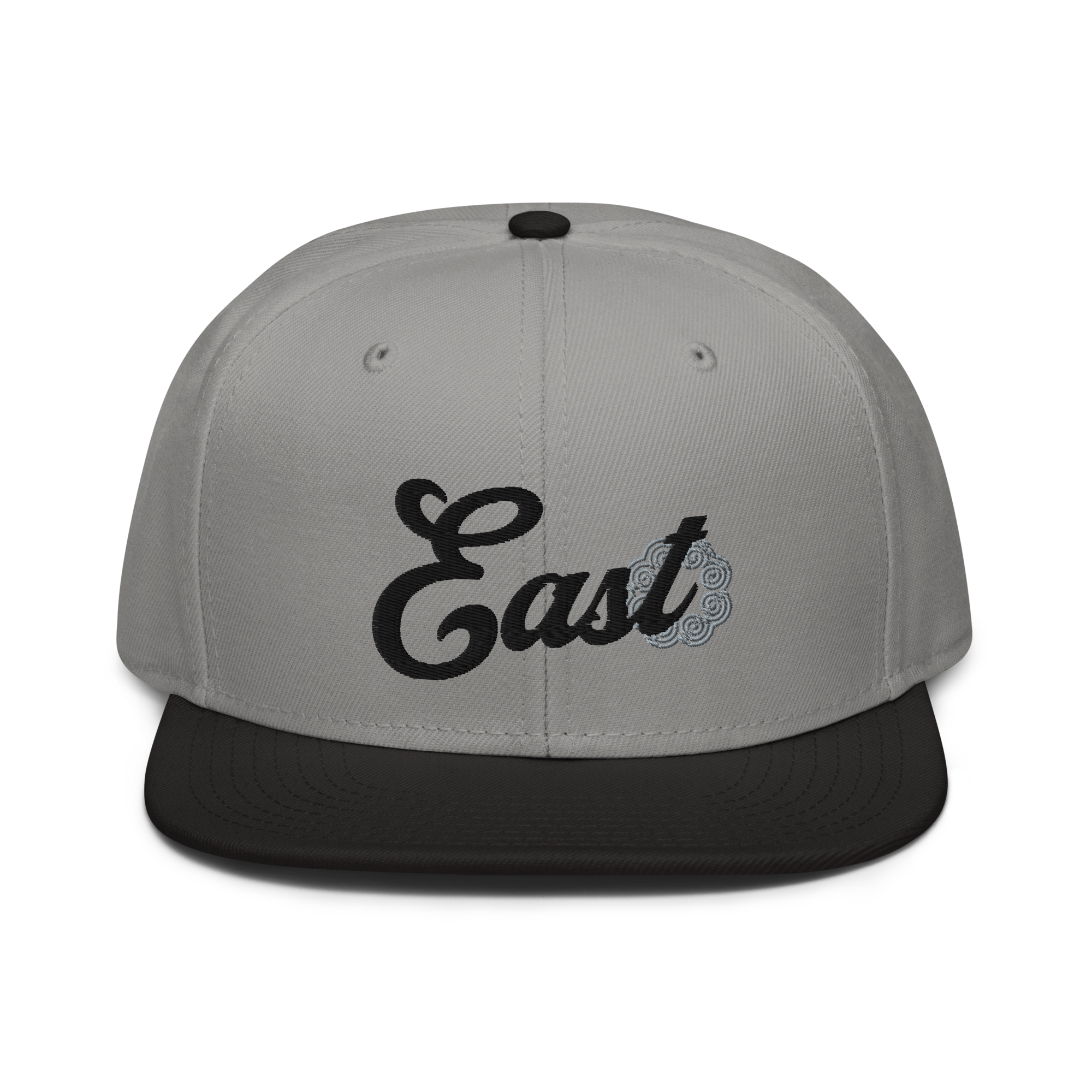 This snapback hat is perfect for any casual outfit. Adorned with a black East emblem against a gray Hmong elephant motif design that are embroidered, it is available in several different color schemes to match your style. It features a classic six-panel design with a flat brim that has a subtle gray color underneath and an adjustable strap in the back.