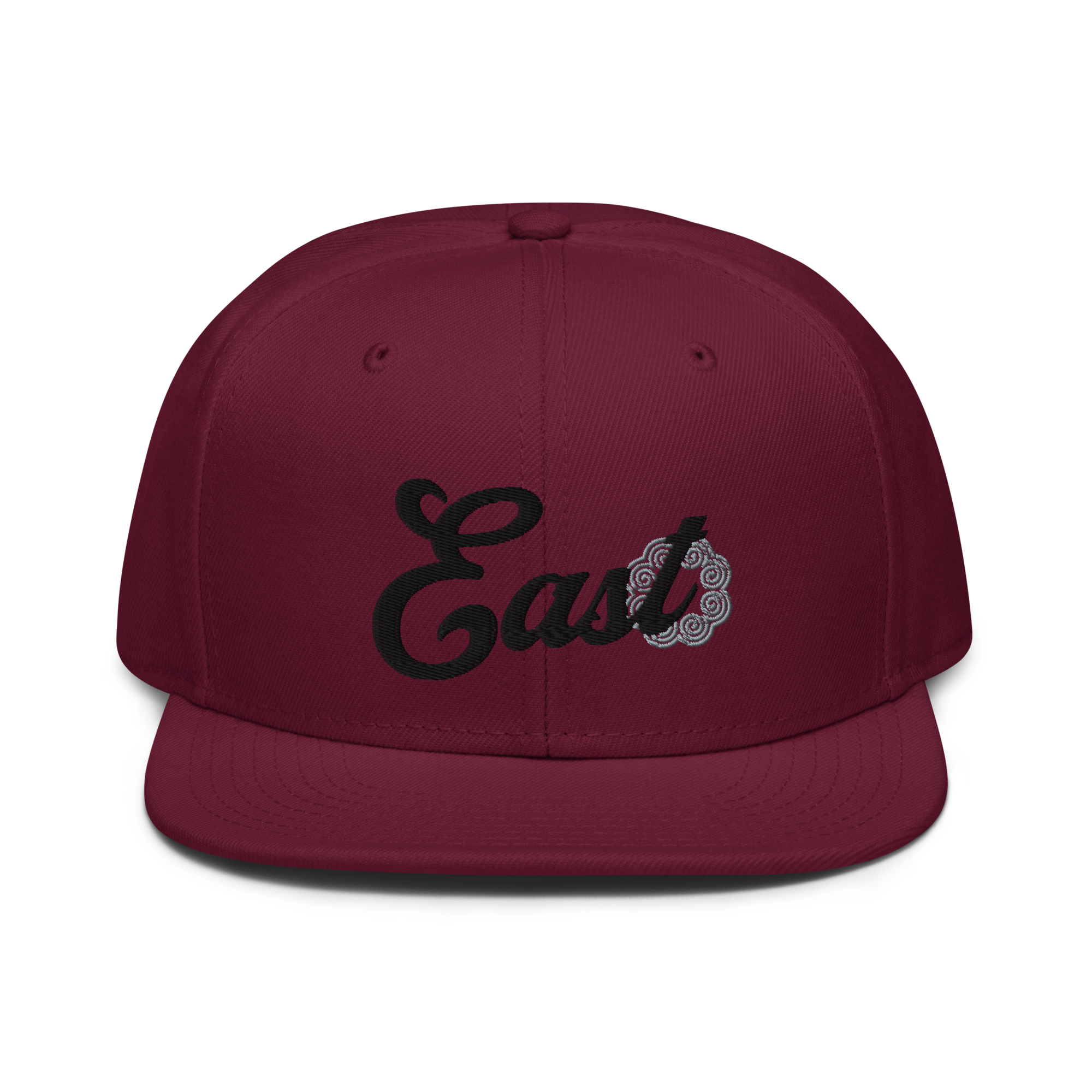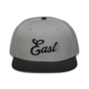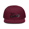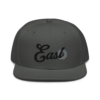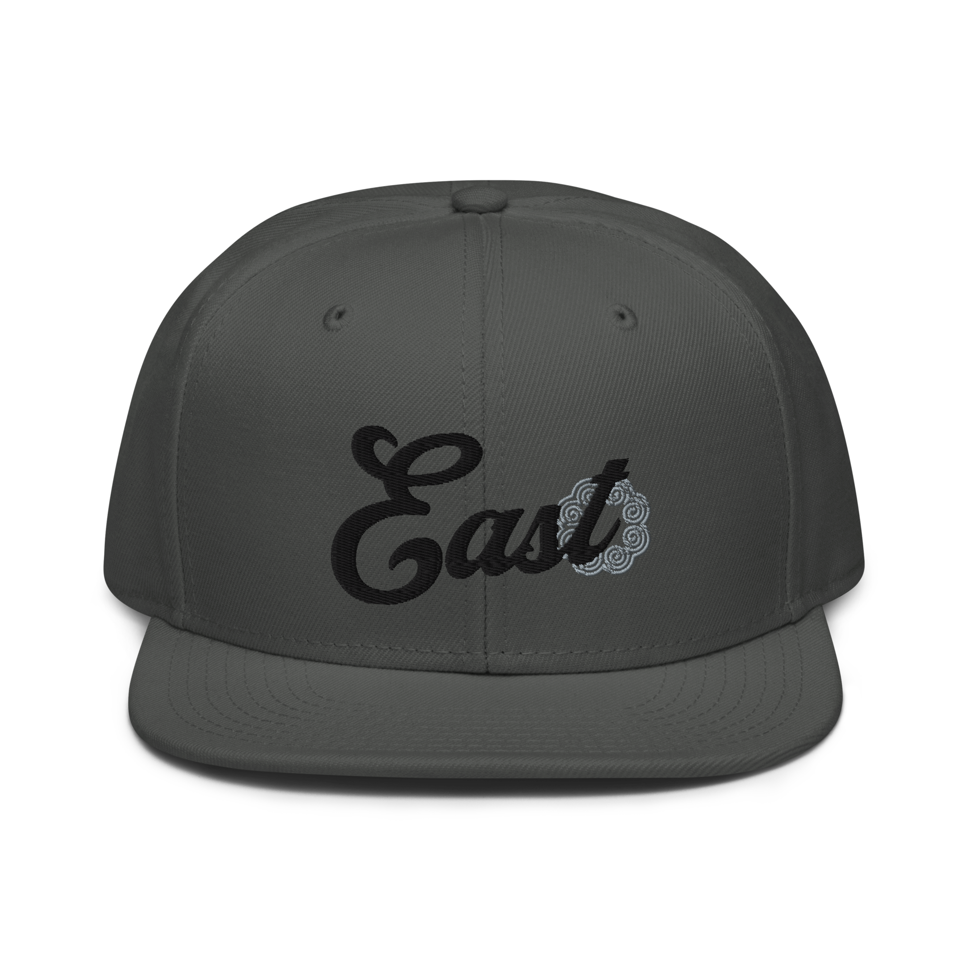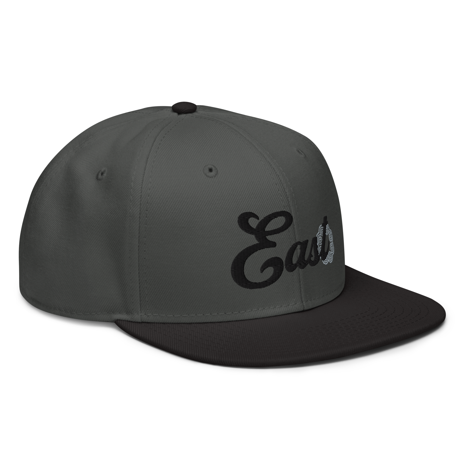 This snapback hat is perfect for any casual outfit. Adorned with a black East emblem against a gray Hmong elephant motif design that are embroidered, it is available in several different color schemes to match your style. It features a classic six-panel design with a flat brim that has a subtle gray color underneath and an adjustable strap in the back.