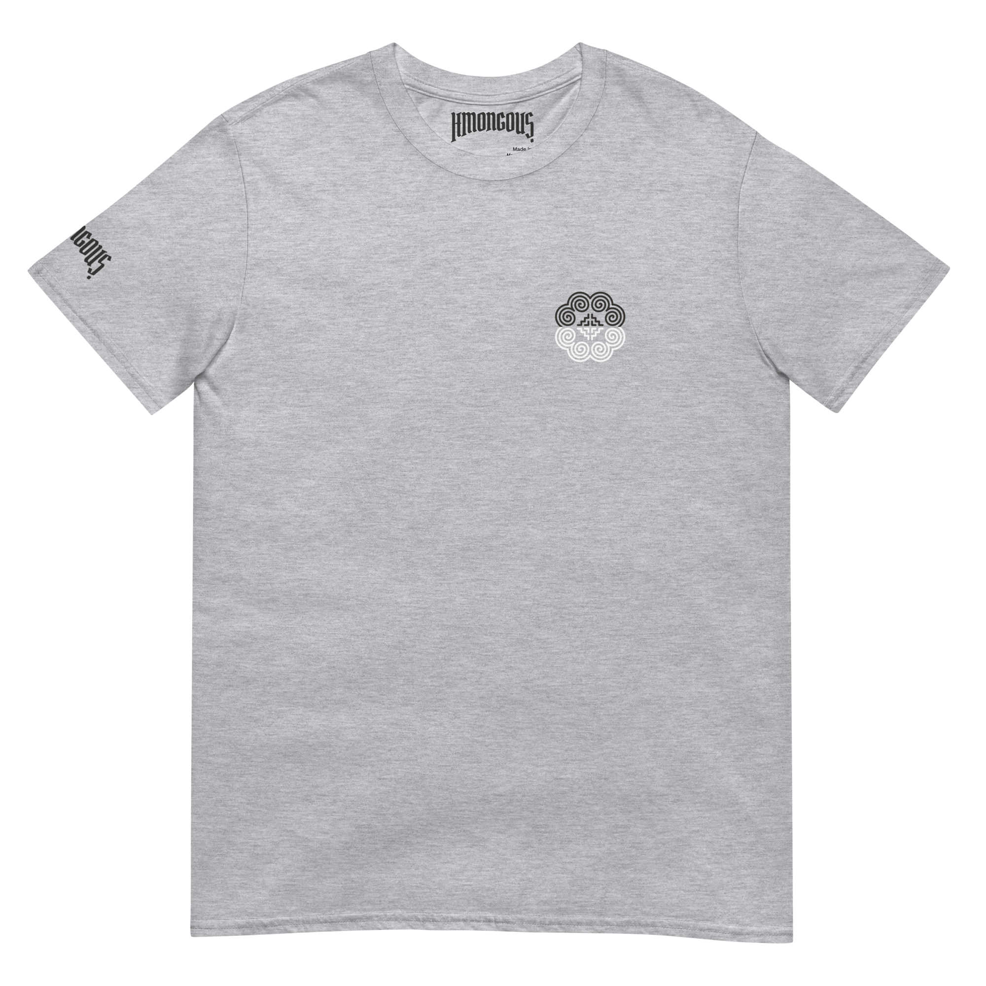 A basic t-shirt is a wardrobe essential for everyone. It’s versatile, comfortable, and can be dressed up or down. Adorned with a half-black and half-white Hmong elephant motif emblem on the chest and a black Hmongous logo on the right sleeve, our t-shirts are made from high-quality cotton and are available in a variety of colors and sizes.