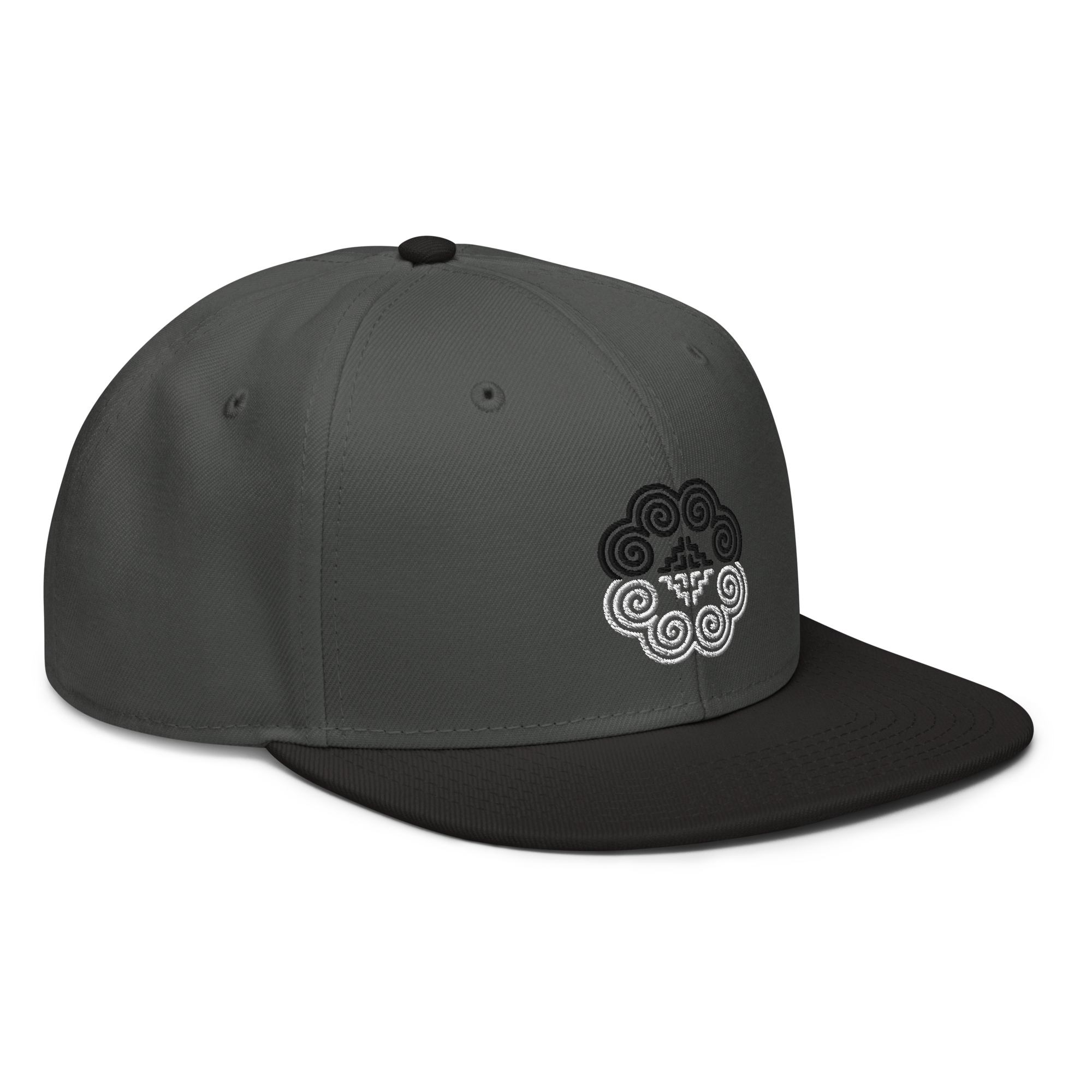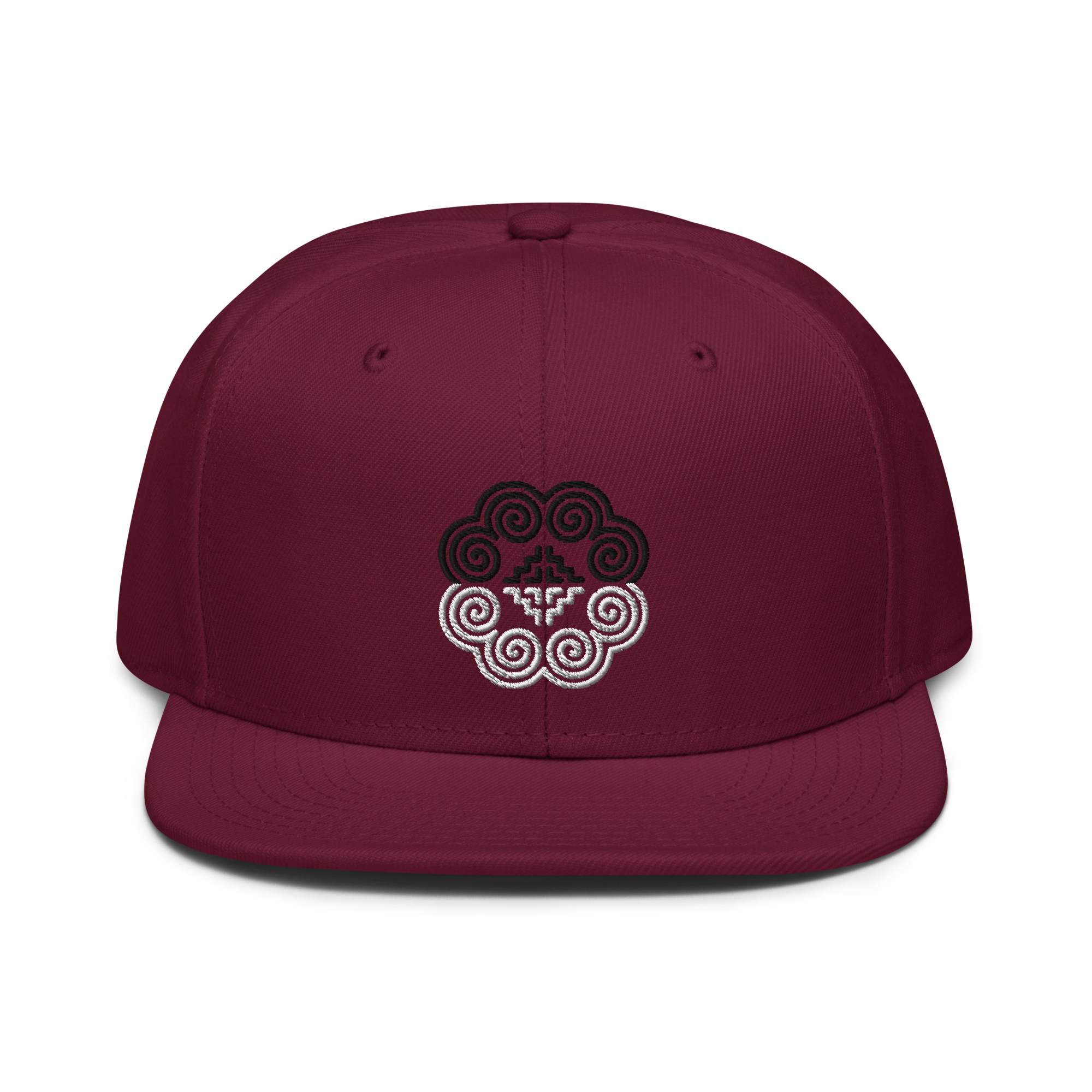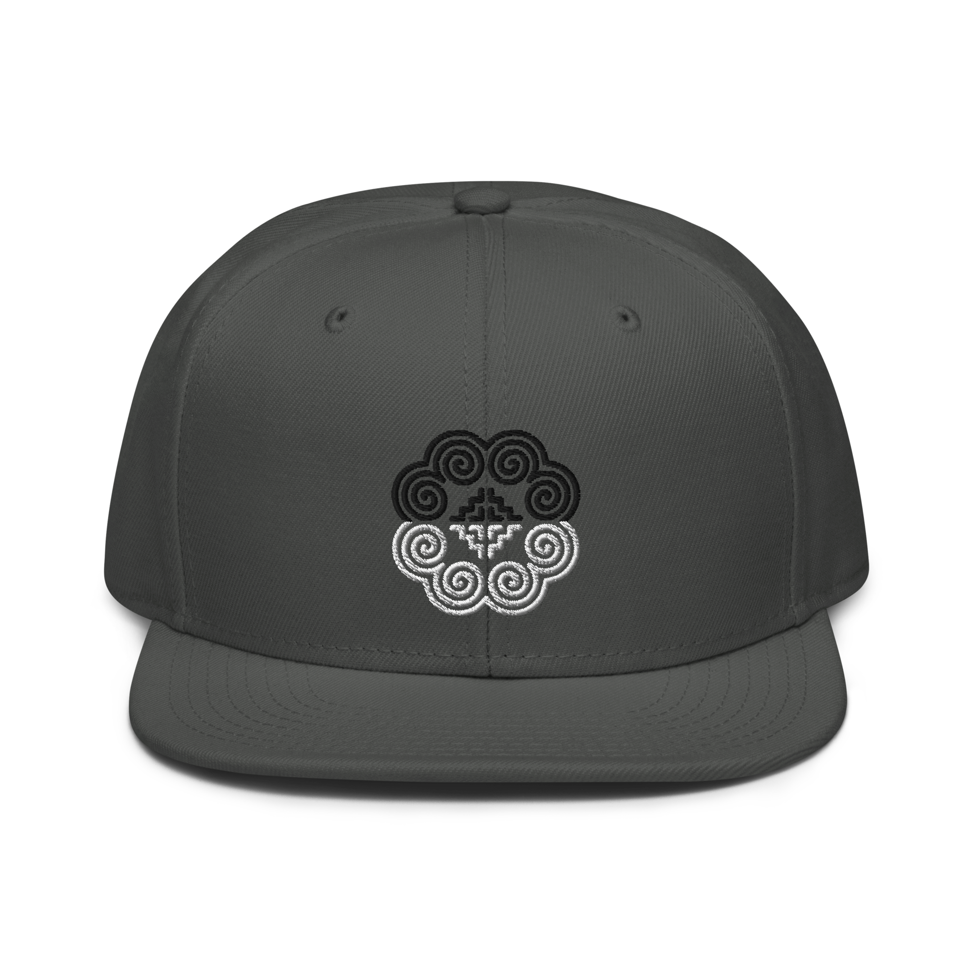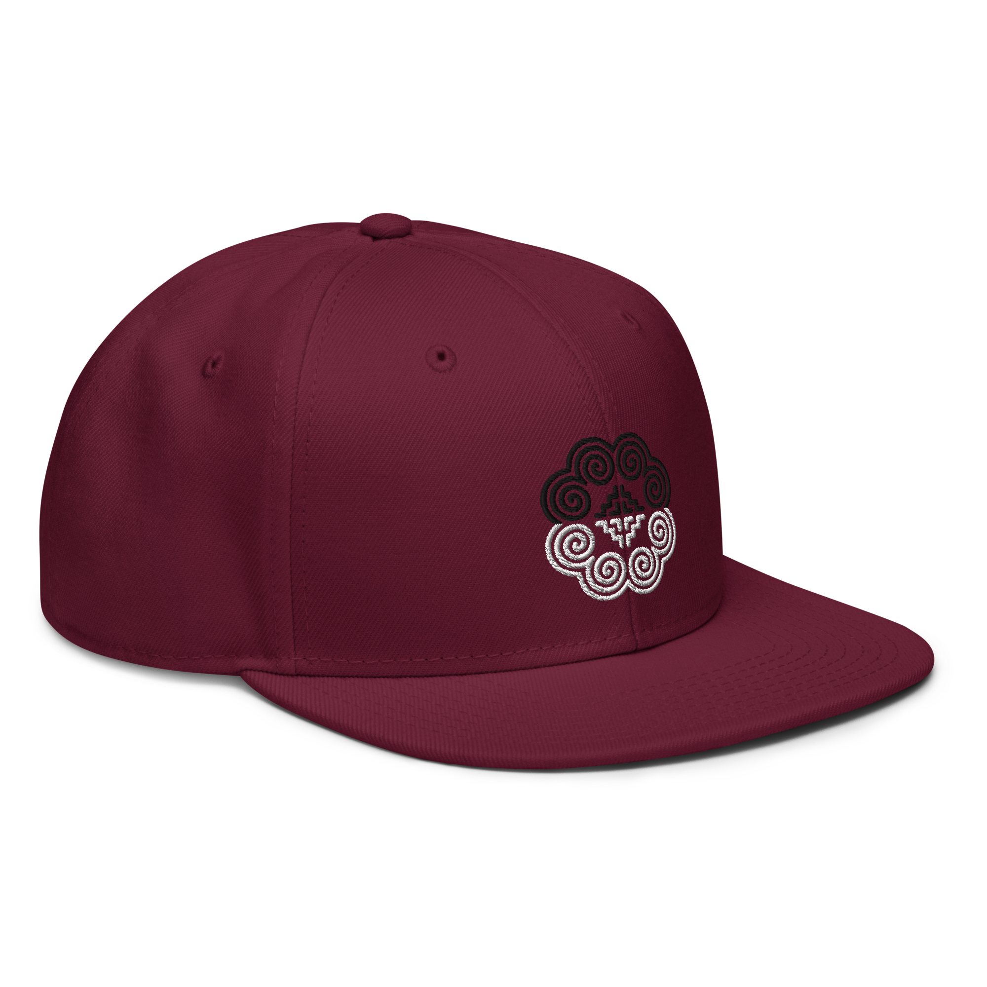 This snapback hat is perfect for any casual outfit. Adorned with a half-black and half-white Hmong elephant motif design that is embroidered, it is available in several different color schemes to match your style. It features a classic six-panel design with a flat brim that has a subtle gray color underneath and an adjustable strap in the back.