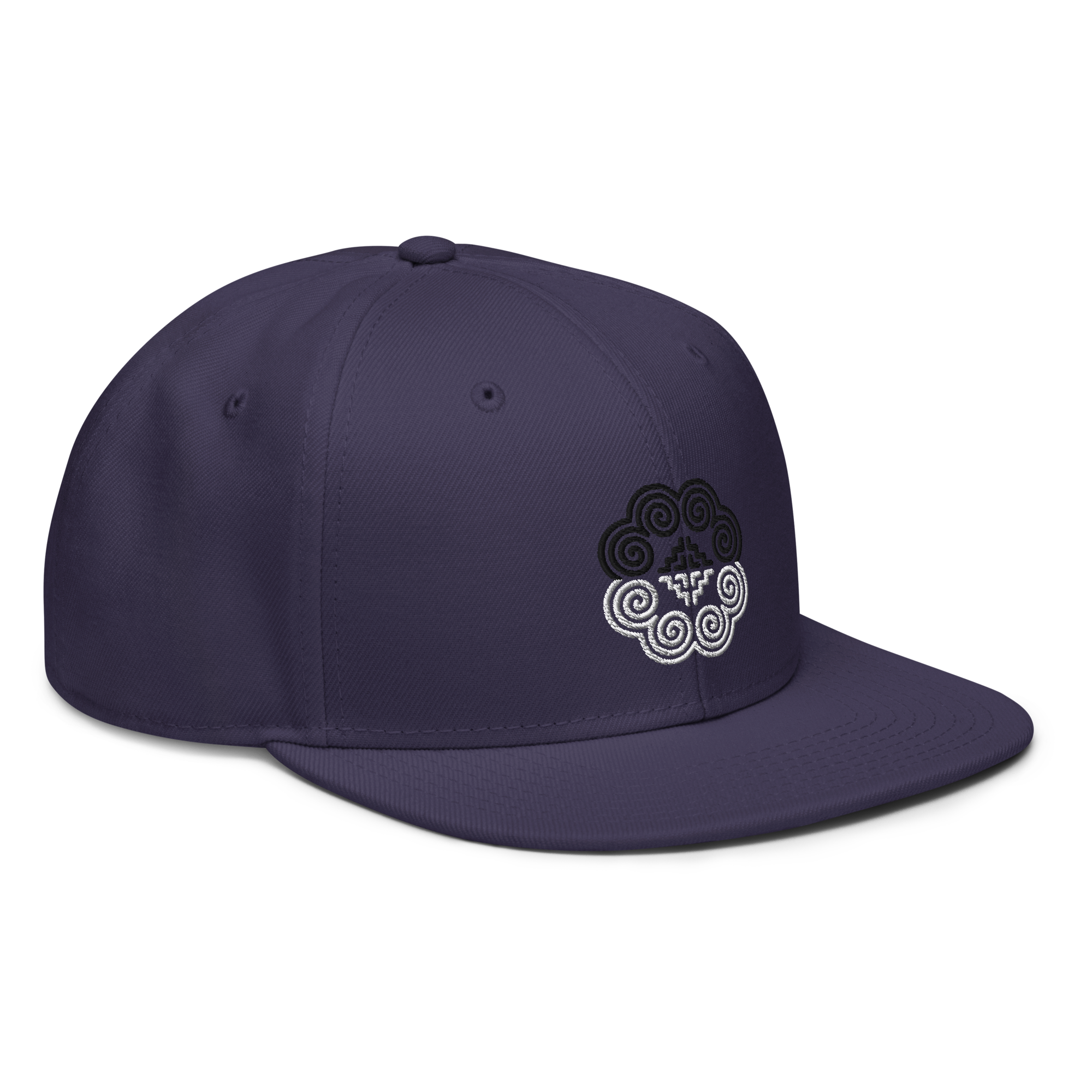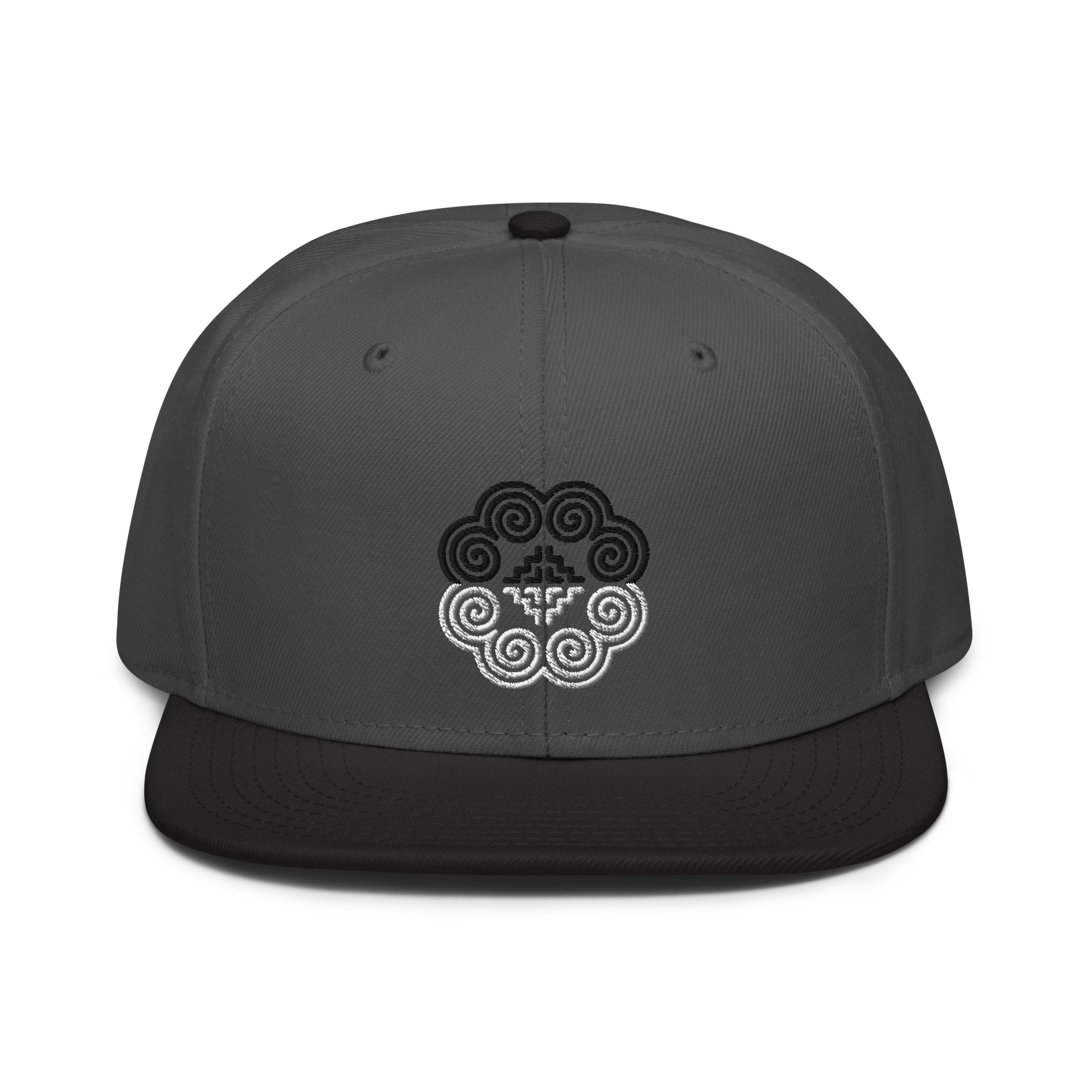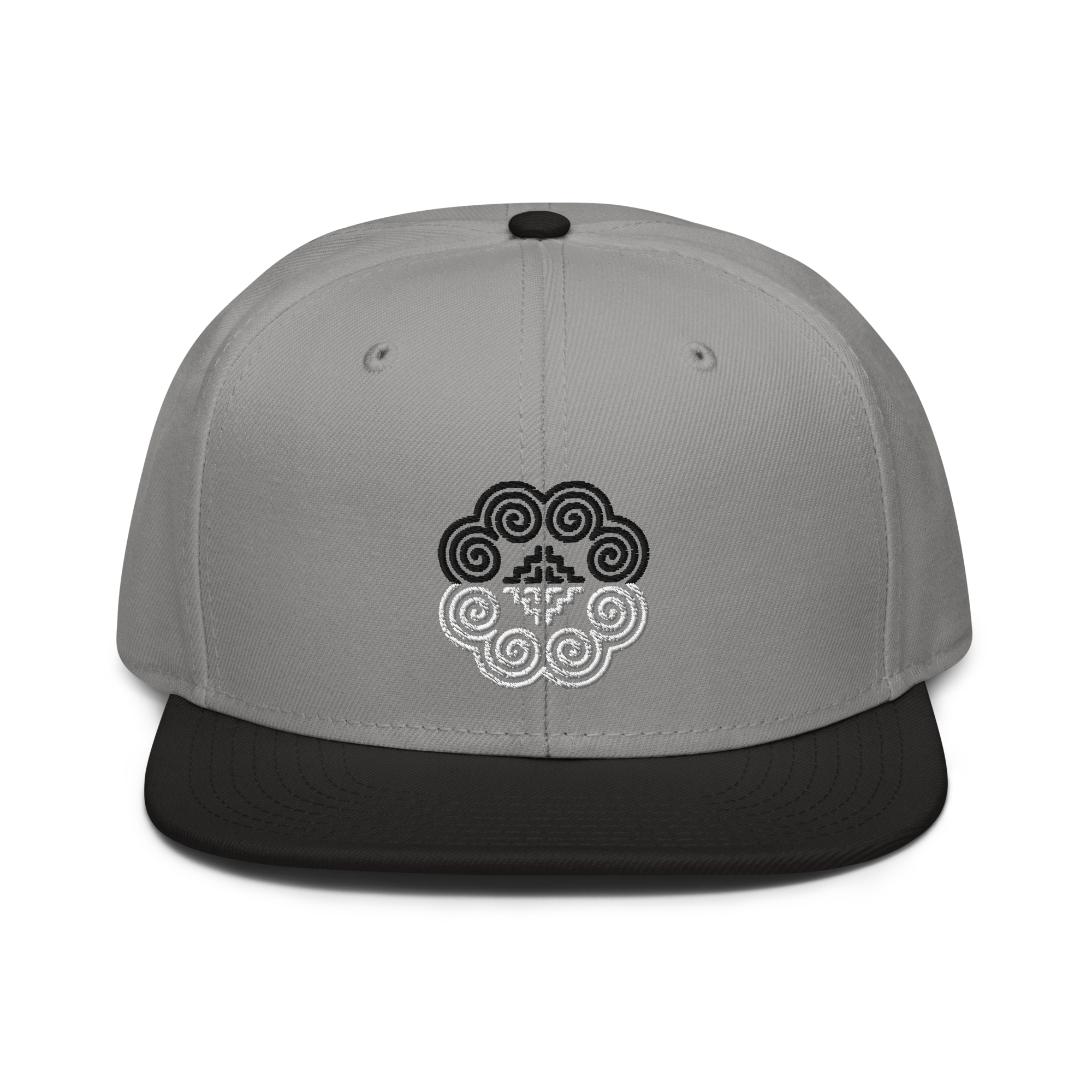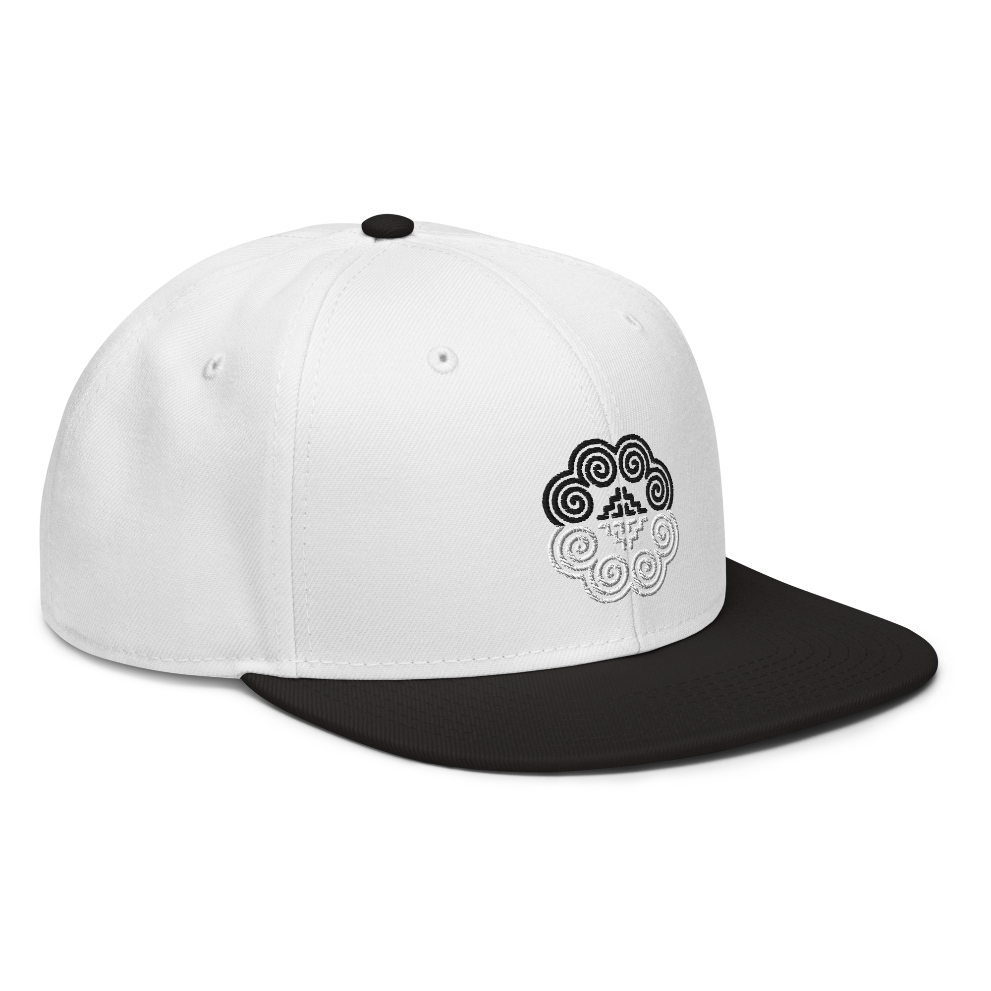 This snapback hat is perfect for any casual outfit. Adorned with a half-black and half-white Hmong elephant motif design that is embroidered, it is available in several different color schemes to match your style. It features a classic six-panel design with a flat brim that has a subtle gray color underneath and an adjustable strap in the back.