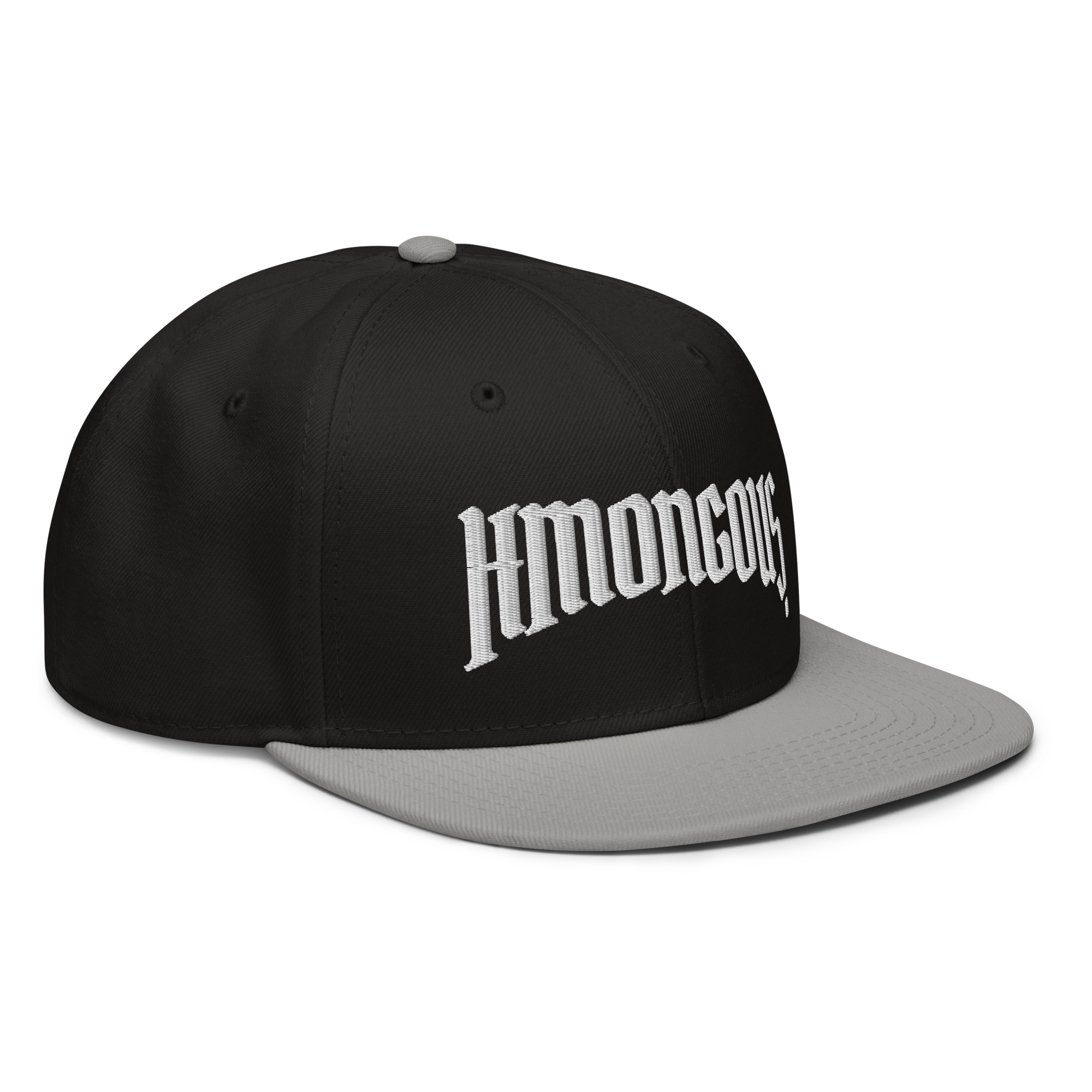 This snapback hat is perfect for any casual outfit. Embroidered with the white Hmongous logo, it is available in several different color schemes to match your style. It features a classic six-panel design with a flat brim that has a subtle gray color underneath and an adjustable strap in the back.