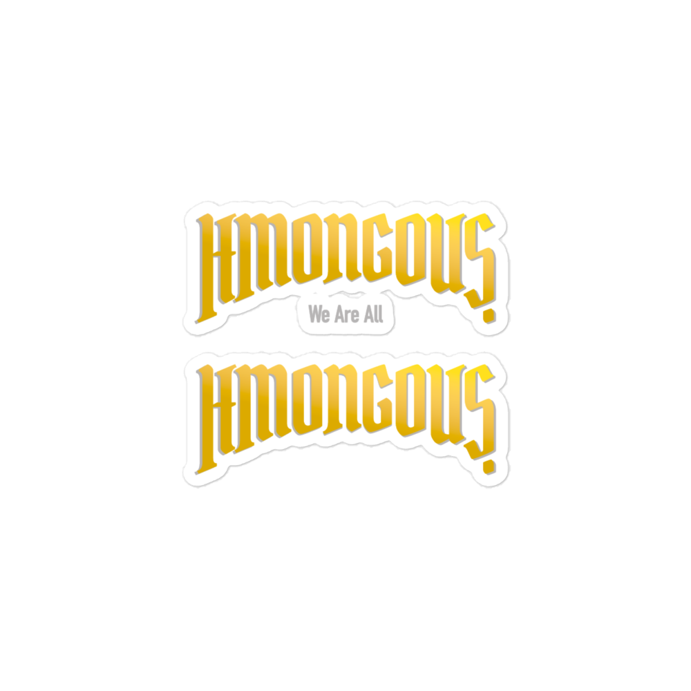Two gold Hmongous stickers are included on a 3″x3″ sheet. They’re printed on durable, high opacity adhesive vinyl which makes them perfect for regular use. Go tag the world and let them know that we are all Hmongous.