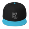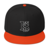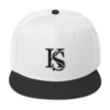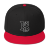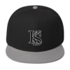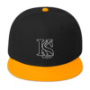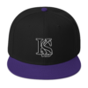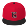 This snapback hat is perfect for any casual outfit. Embroidered with a black Kansas abbreviation, it is available in several different color schemes to match your style. It features a classic six-panel design with a flat brim that has a subtle gray color underneath and an adjustable strap in the back.