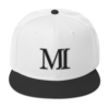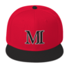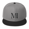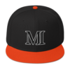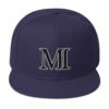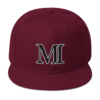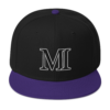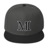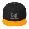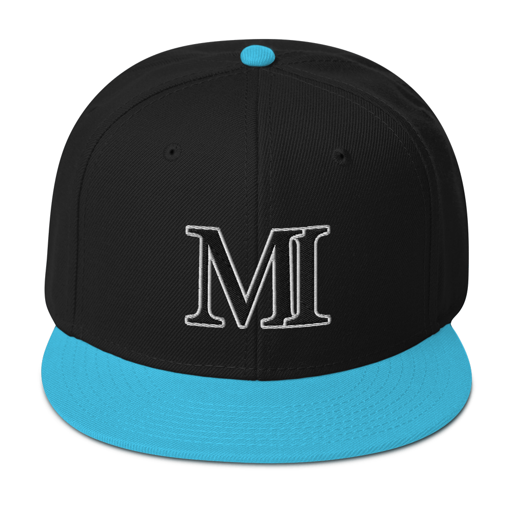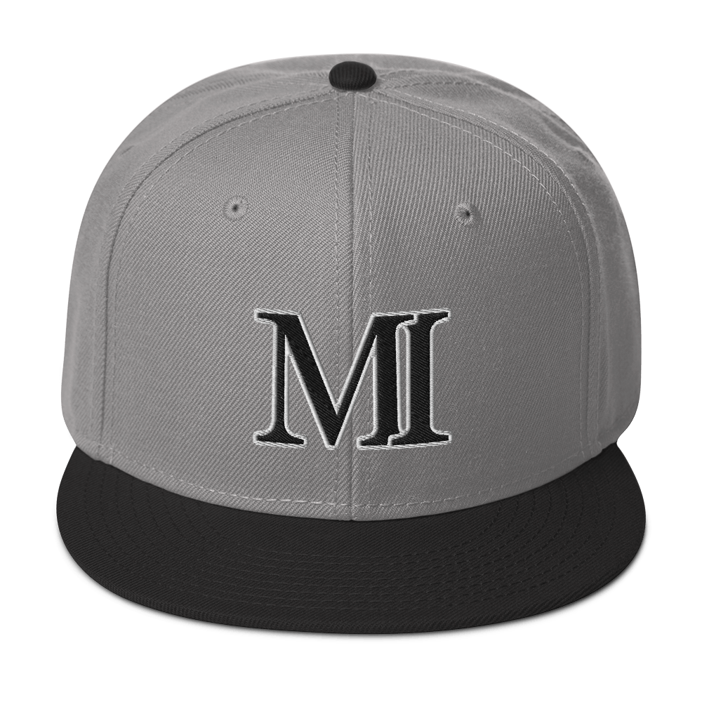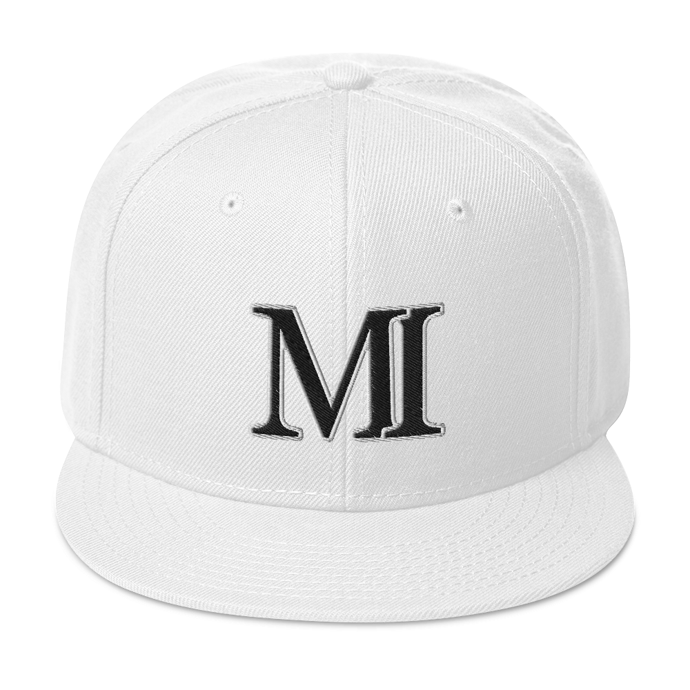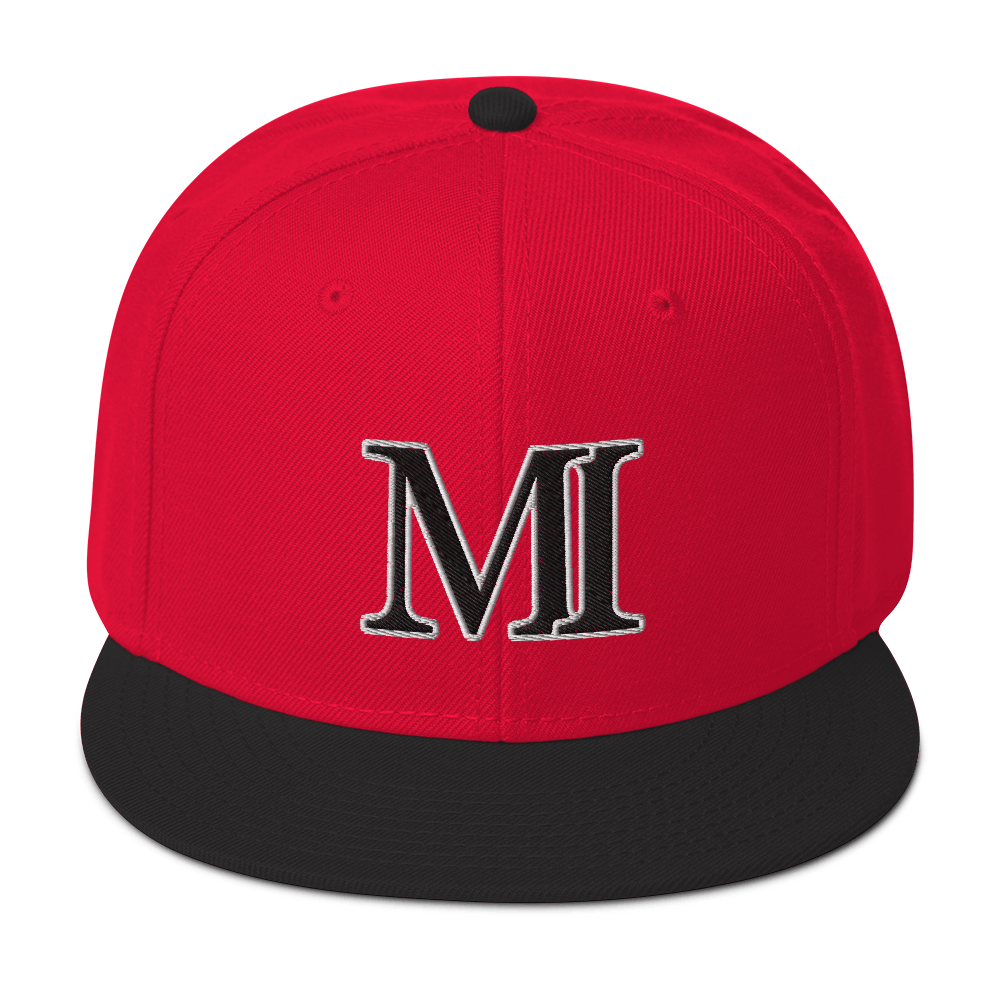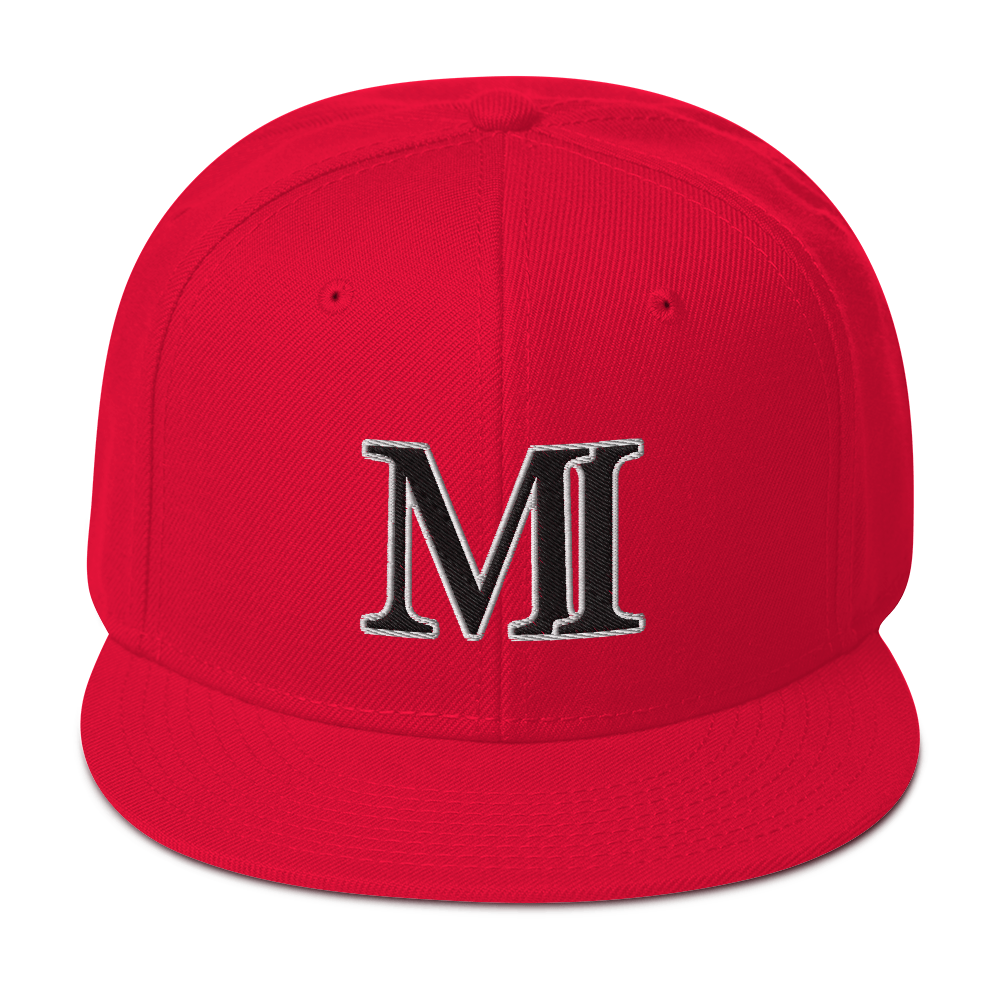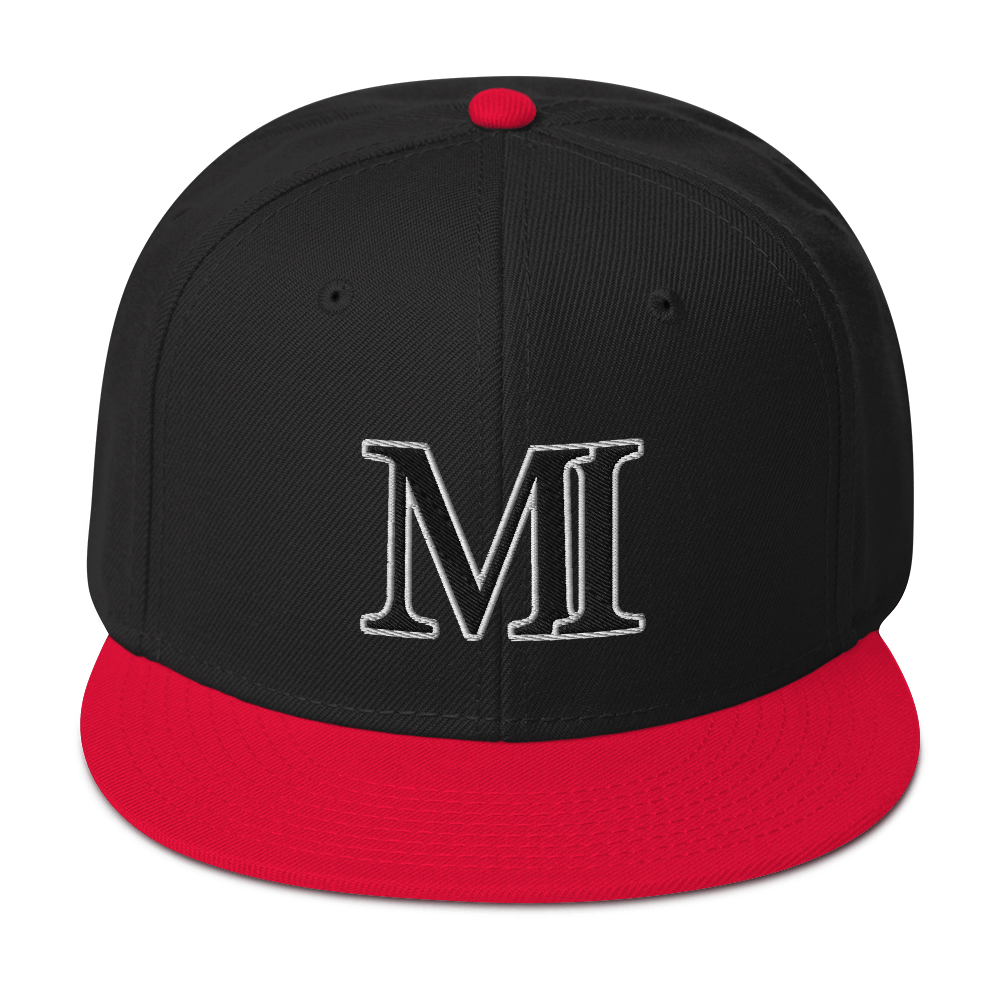 This snapback hat is perfect for any casual outfit. Embroidered with a black Michigan abbreviation, it is available in several different color schemes to match your style. It features a classic six-panel design with a flat brim that has a subtle gray color underneath and an adjustable strap in the back.