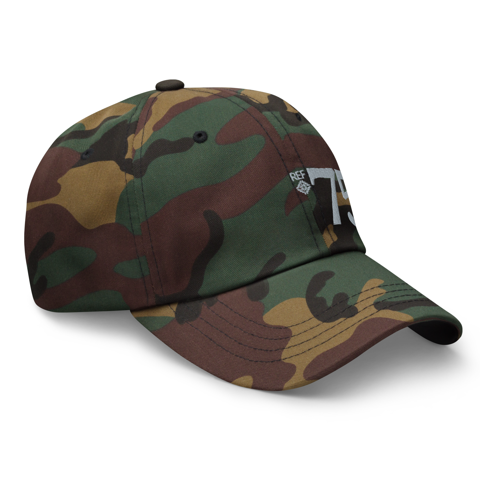 The Hmong American experience was established when we were refugeed in 1975. Remember our roots with this gray embroidered REF’75 emblem on a classic-style hat that’s available in multiple colors.