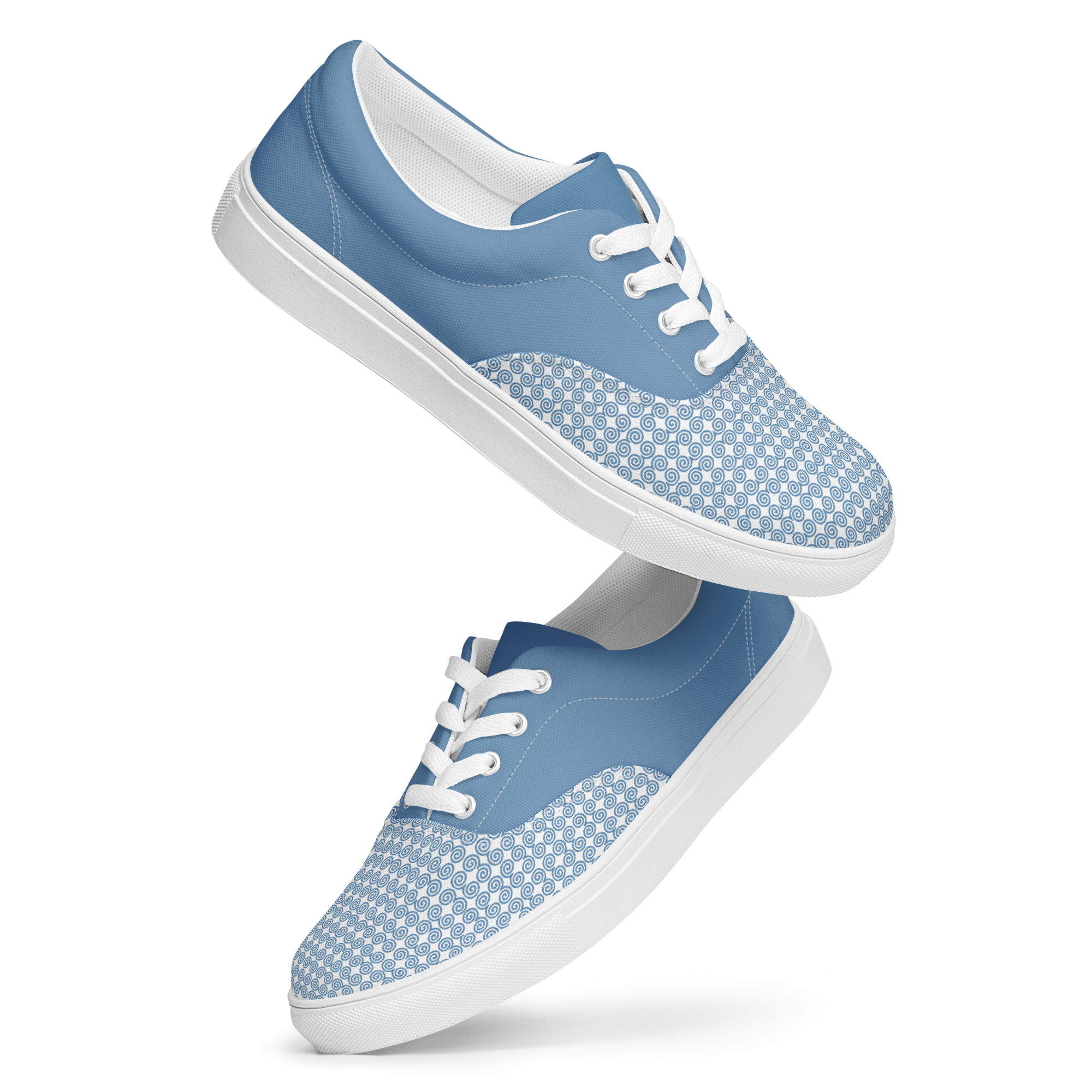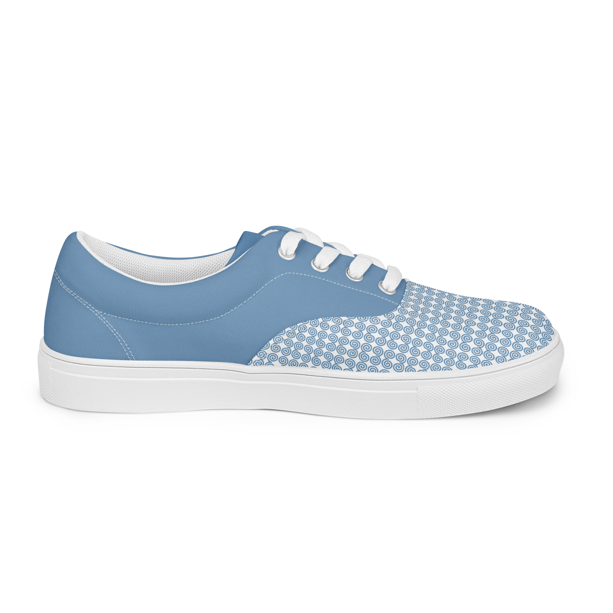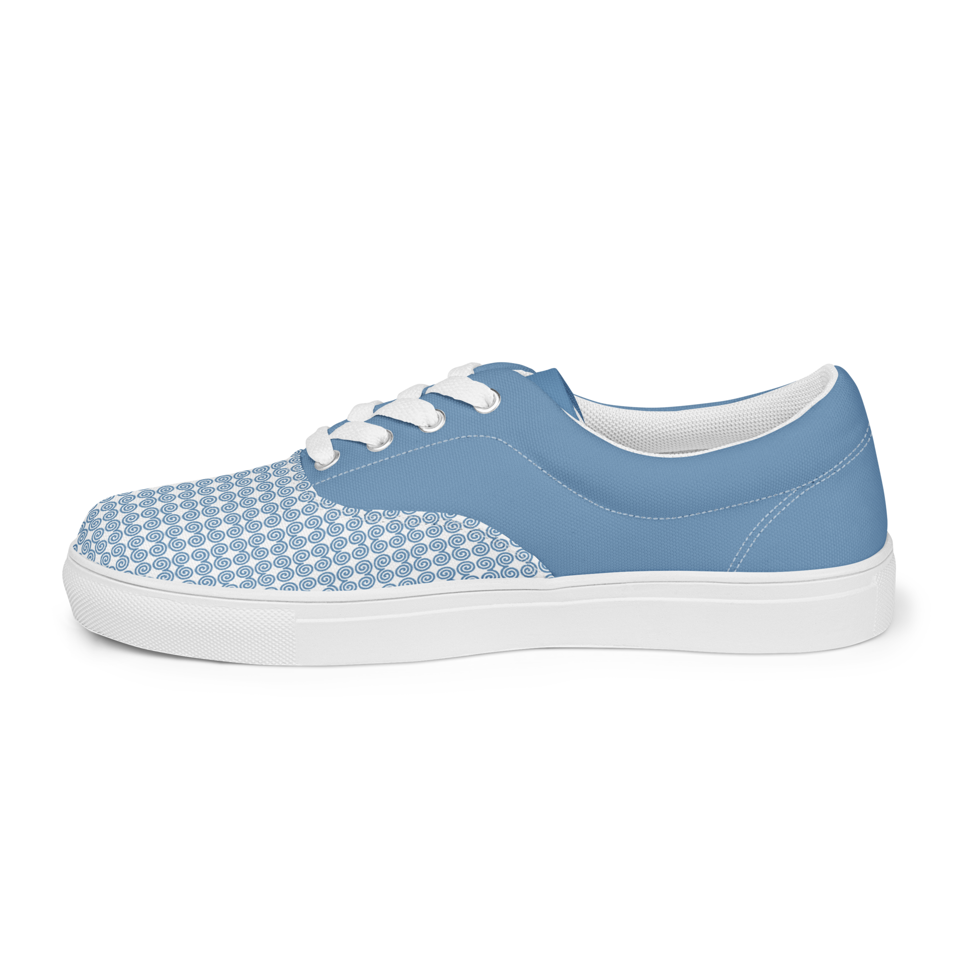 Timeless style combined with everyday versatility. Thanks to the breathable lining and soft insole, these men’s lace-up canvas shoes that are adorned in a blue Hmong snail motif design will withstand even the toughest trails.