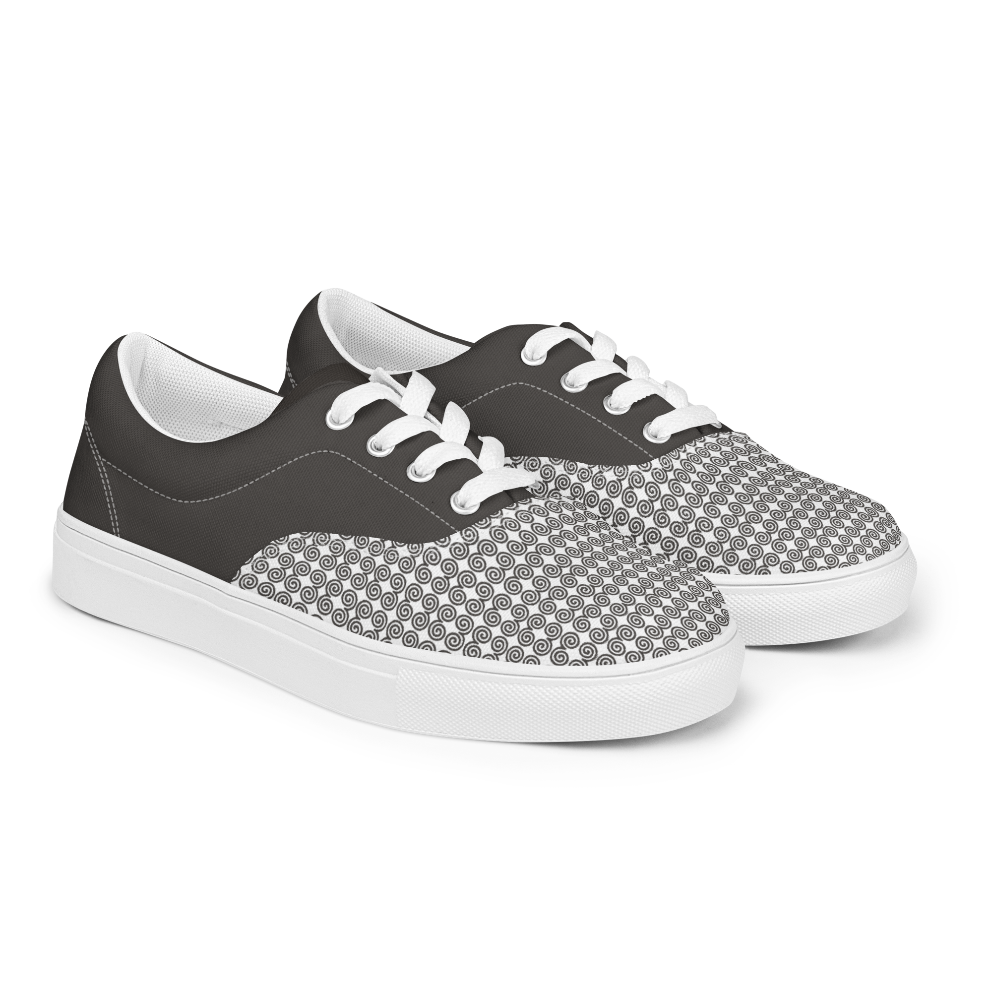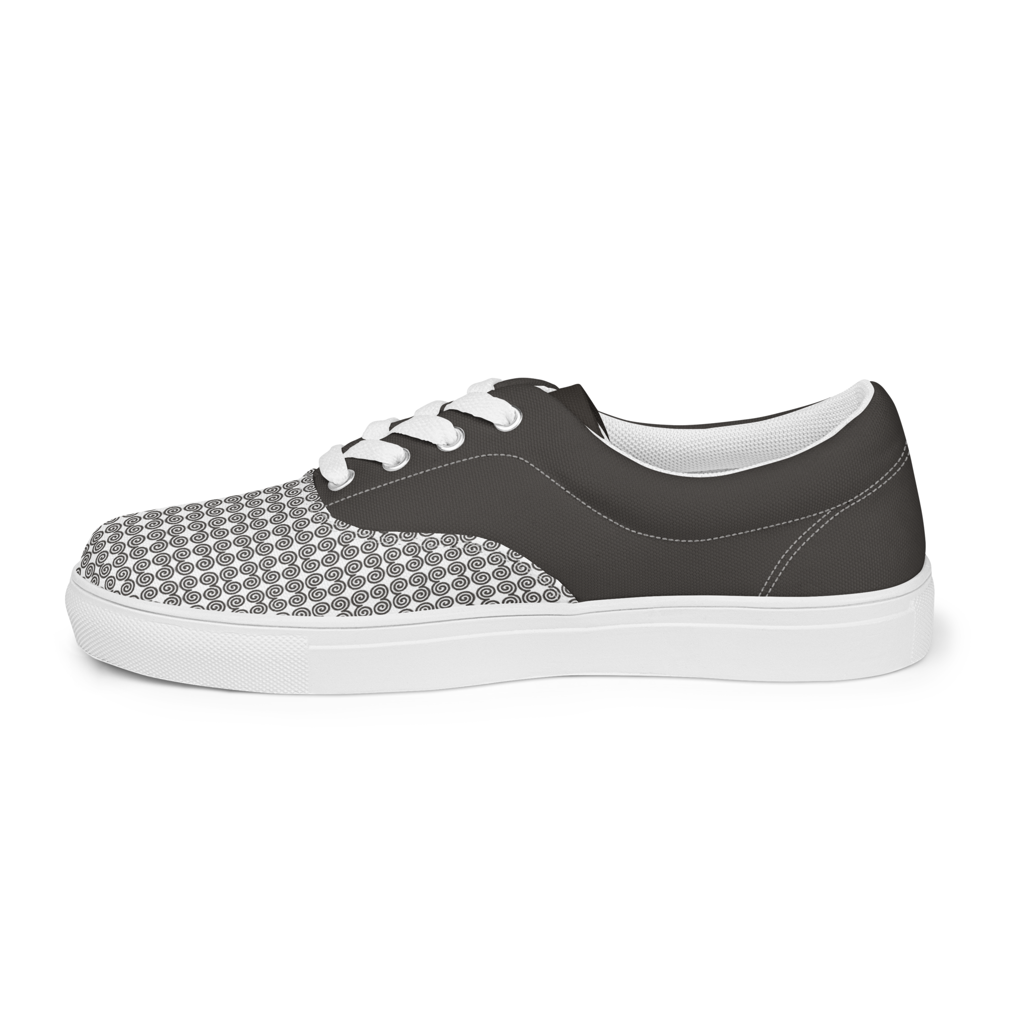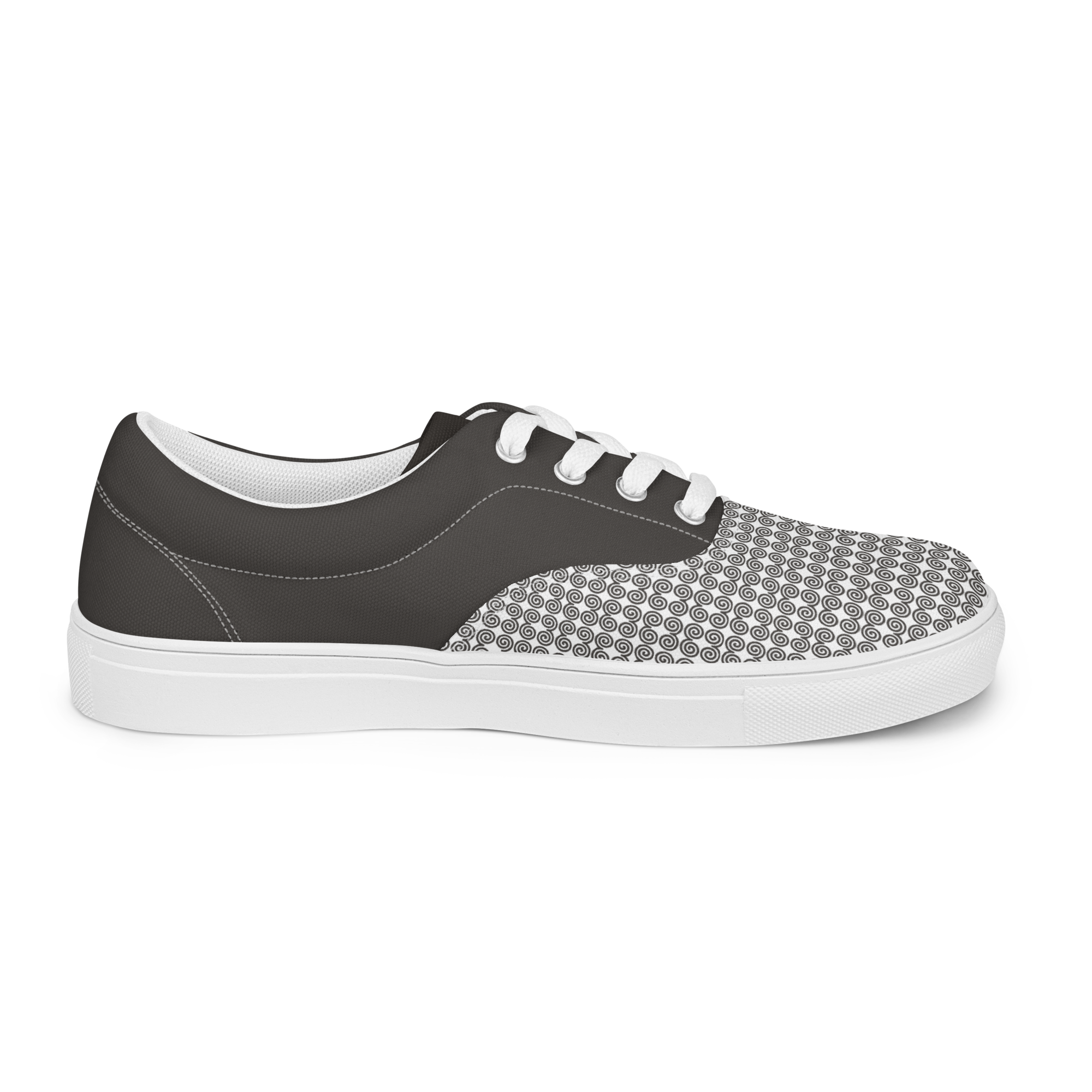 Timeless style combined with everyday versatility. Thanks to the breathable lining and soft insole, these men’s lace-up canvas shoes that are adorned in a gray Hmong snail motif design will withstand even the toughest trails.