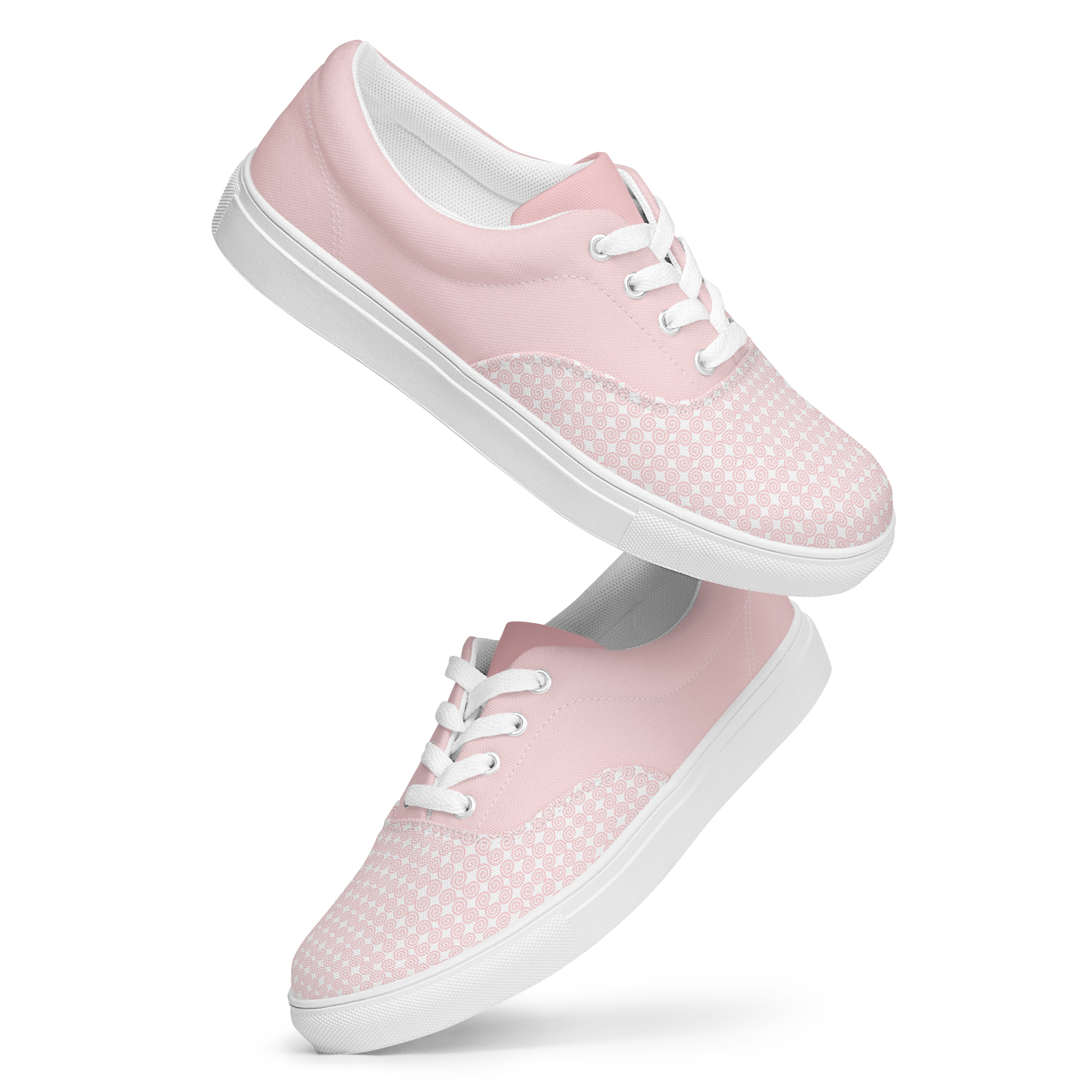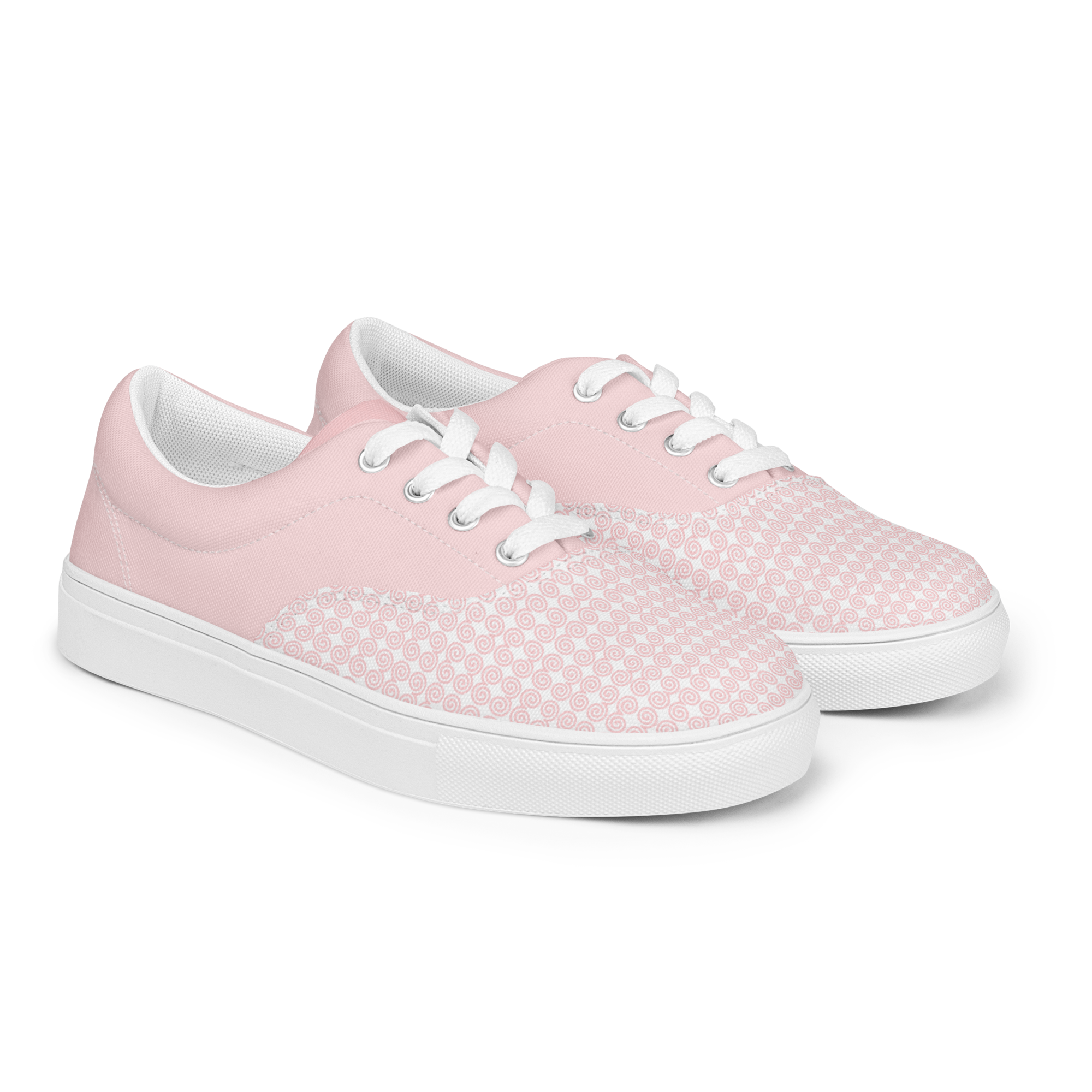 No closet is complete without a pair of sneakers. Step up your shoe game with these women’s lace-up canvas shoes that are adorned in a soft pink Hmong snail motif design.