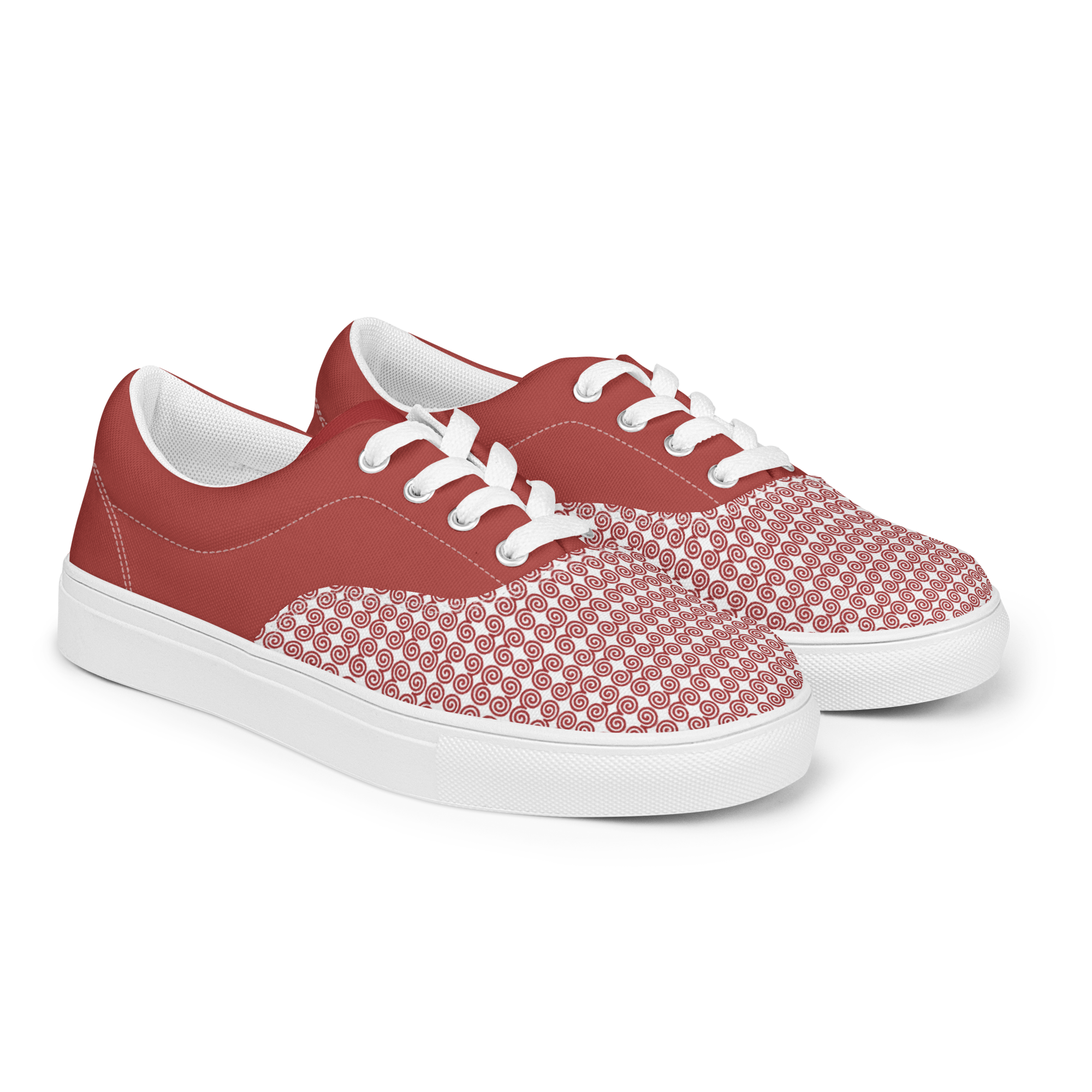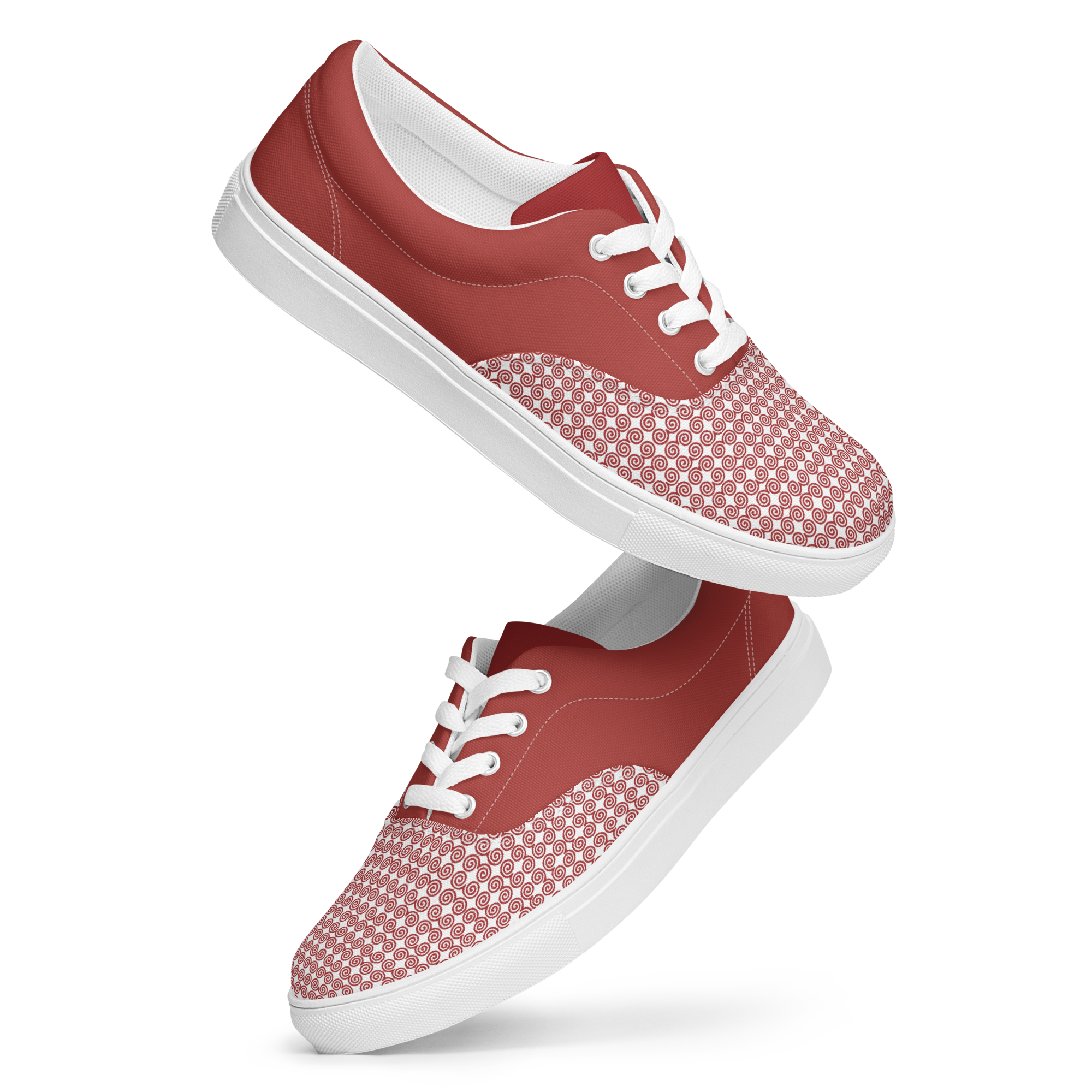 Timeless style combined with everyday versatility. Thanks to the breathable lining and soft insole, these men’s lace-up canvas shoes that are adorned in a red Hmong snail motif design will withstand even the toughest trails.