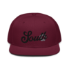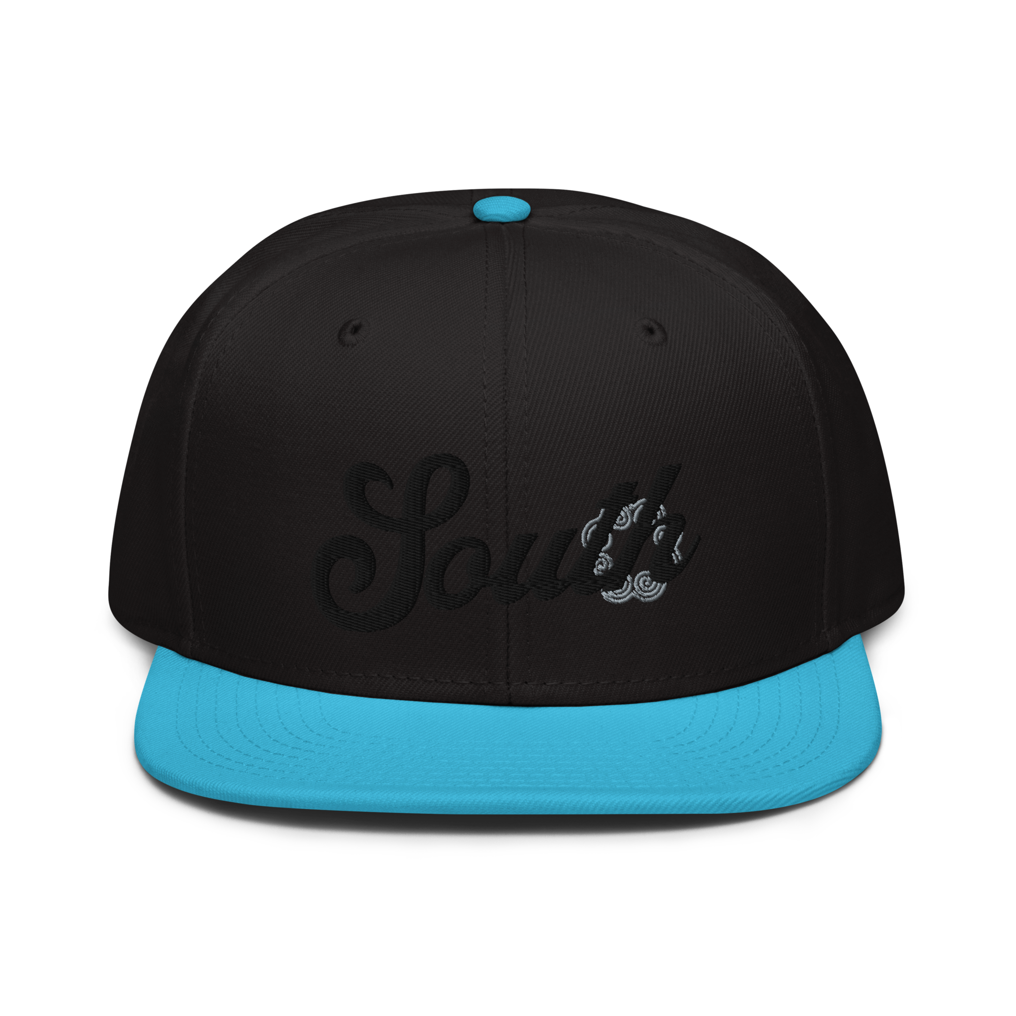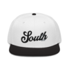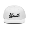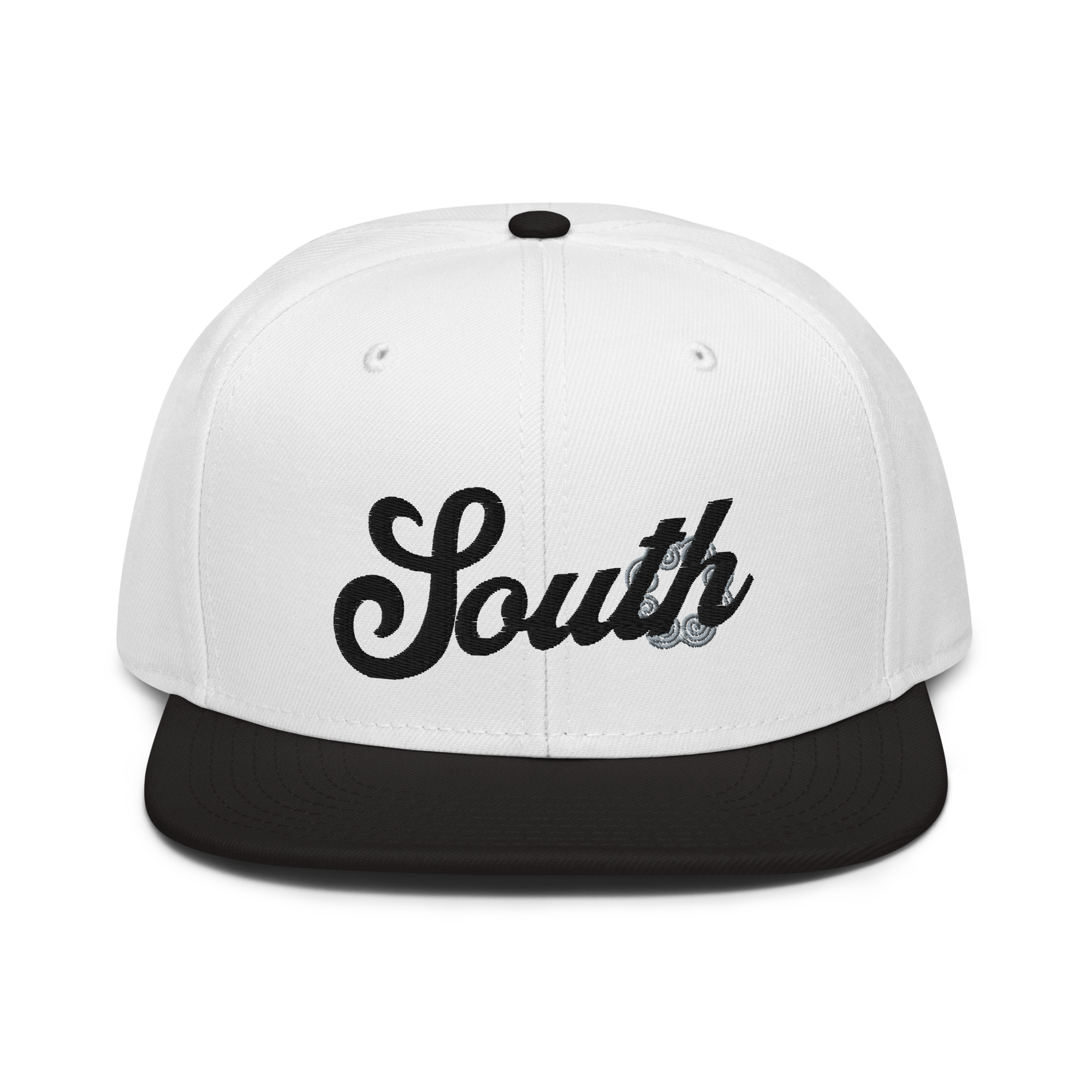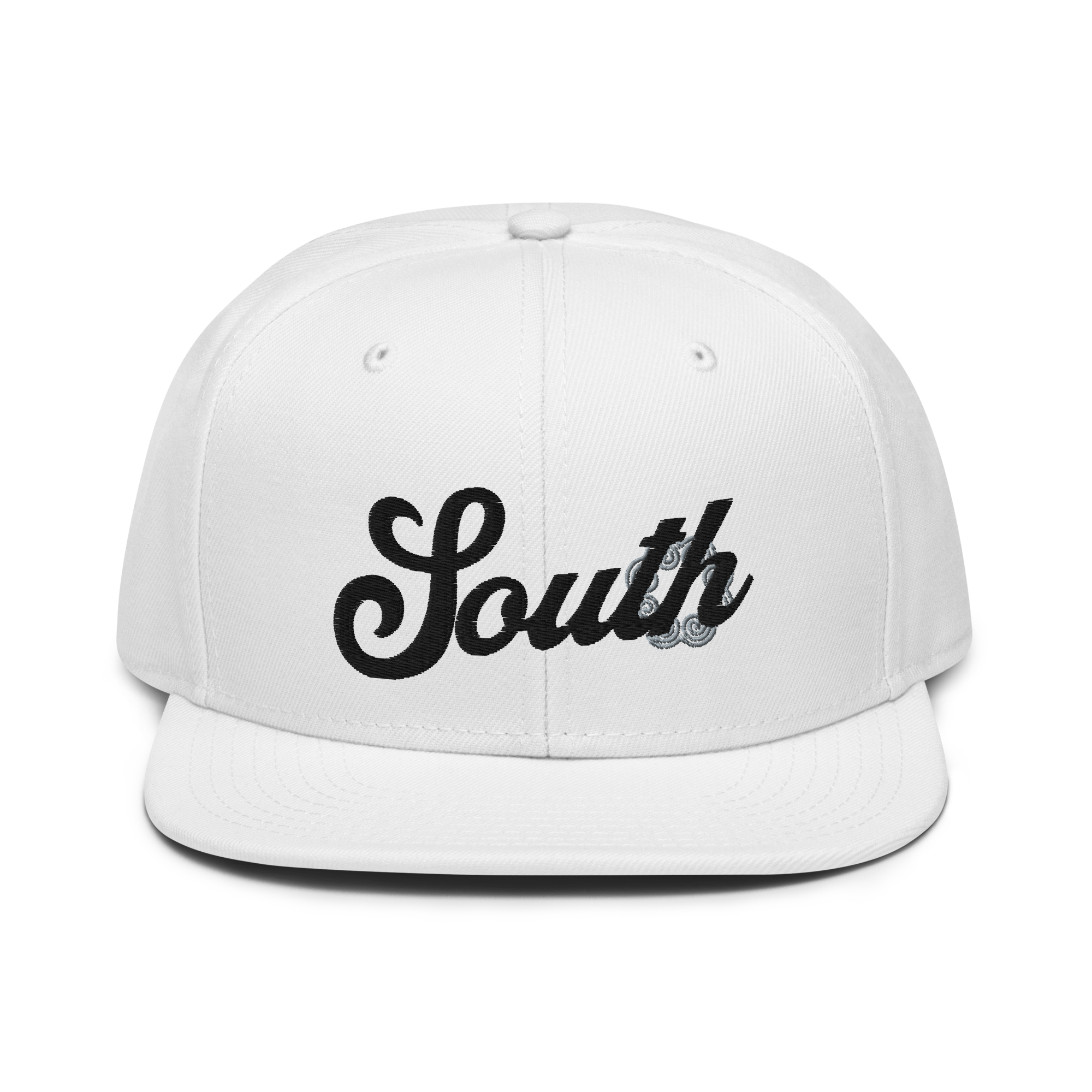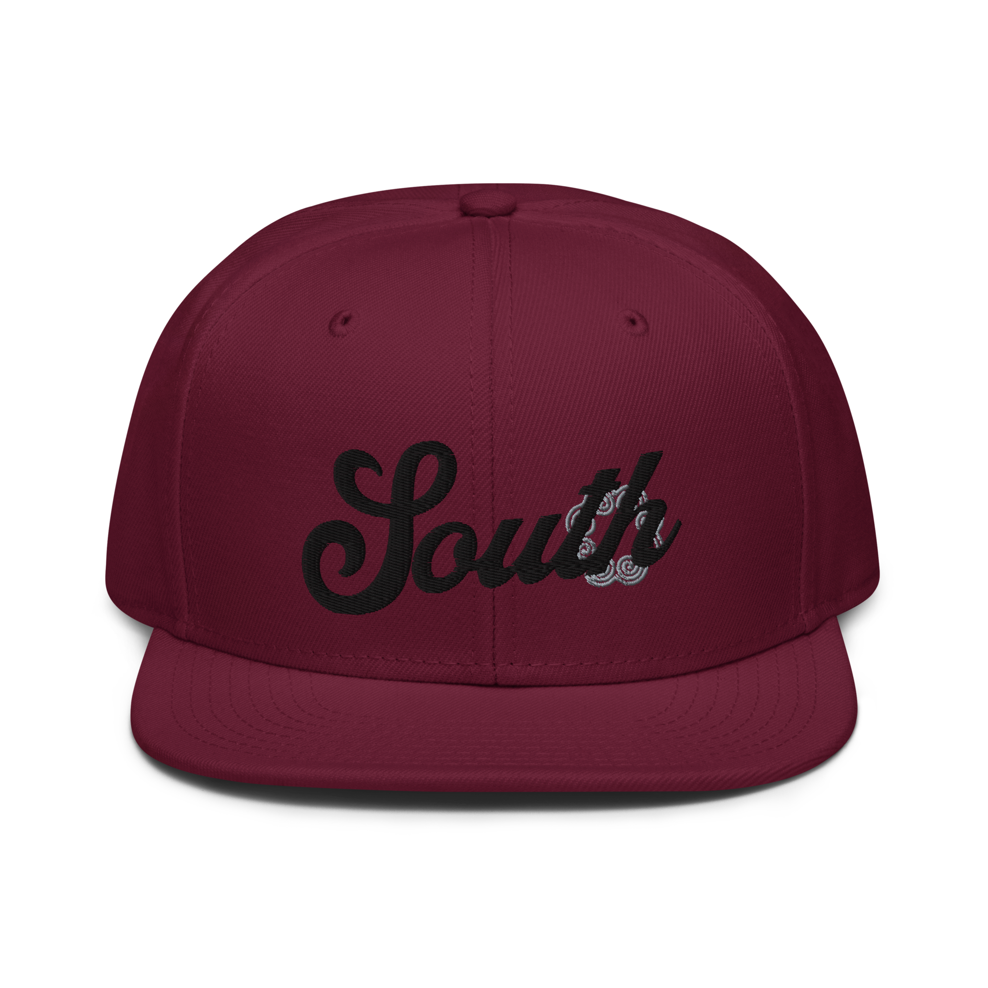 This snapback hat is perfect for any casual outfit. Adorned with a black South emblem against a gray Hmong elephant motif design that are embroidered, it is available in several different color schemes to match your style. It features a classic six-panel design with a flat brim that has a subtle gray color underneath and an adjustable strap in the back.