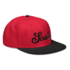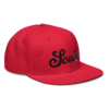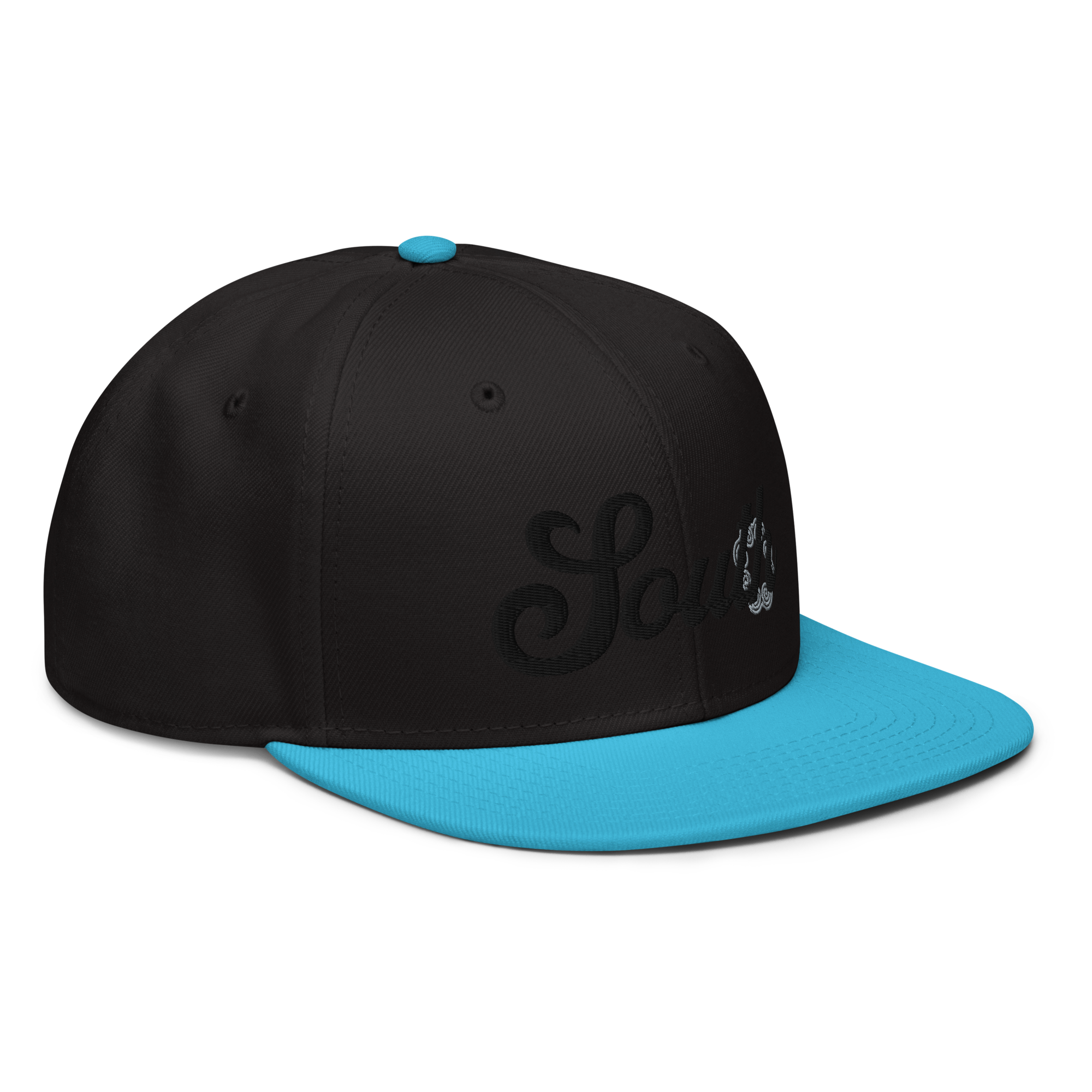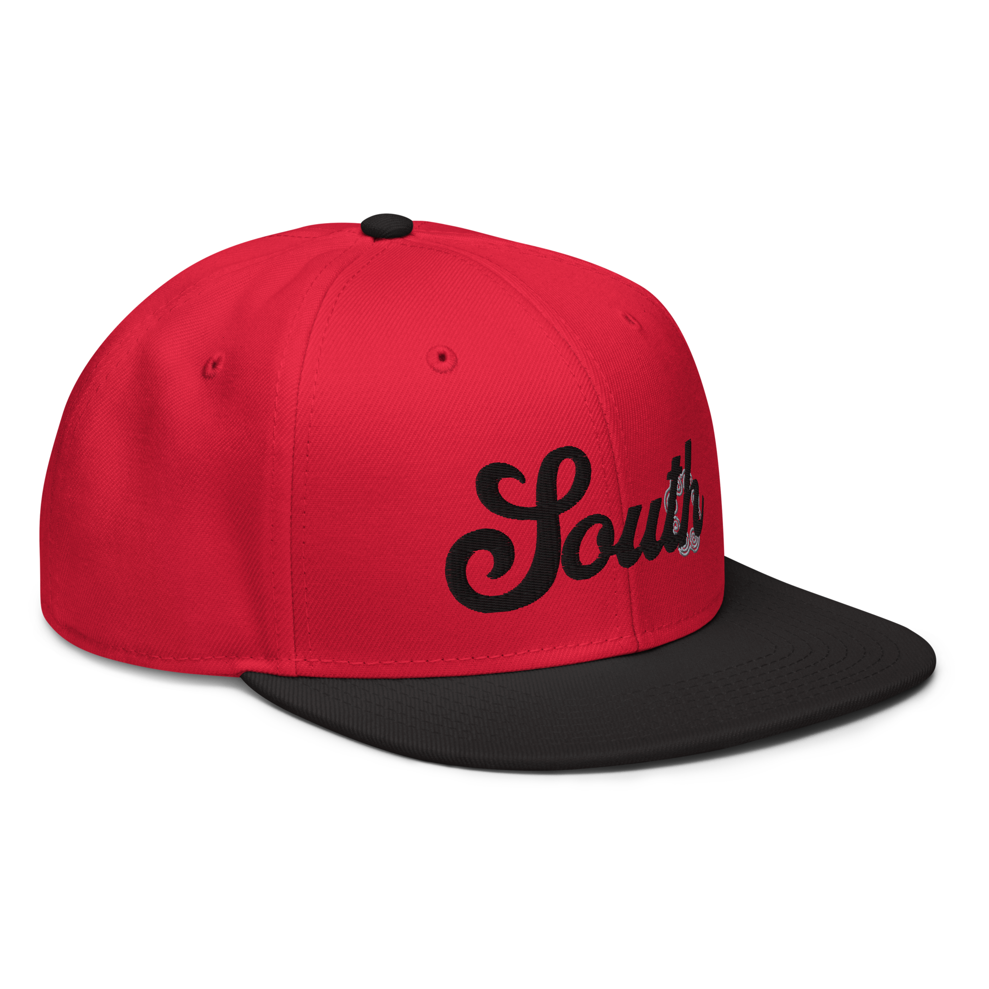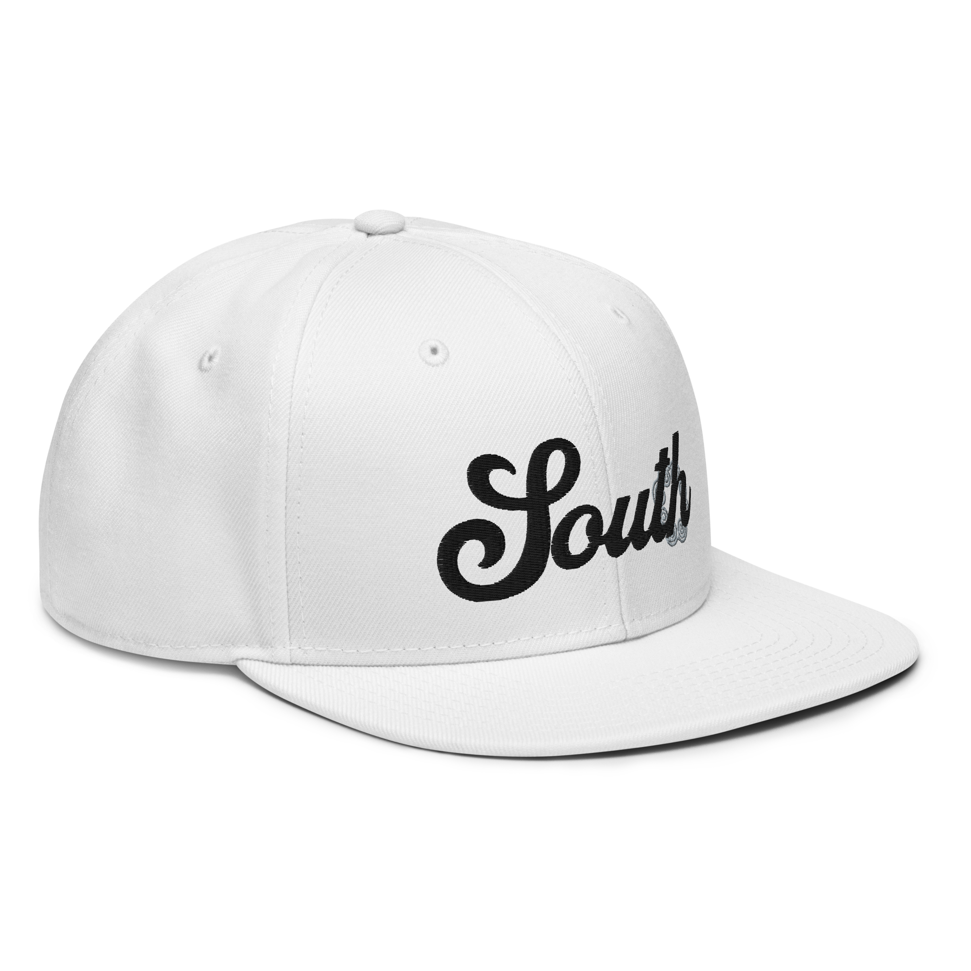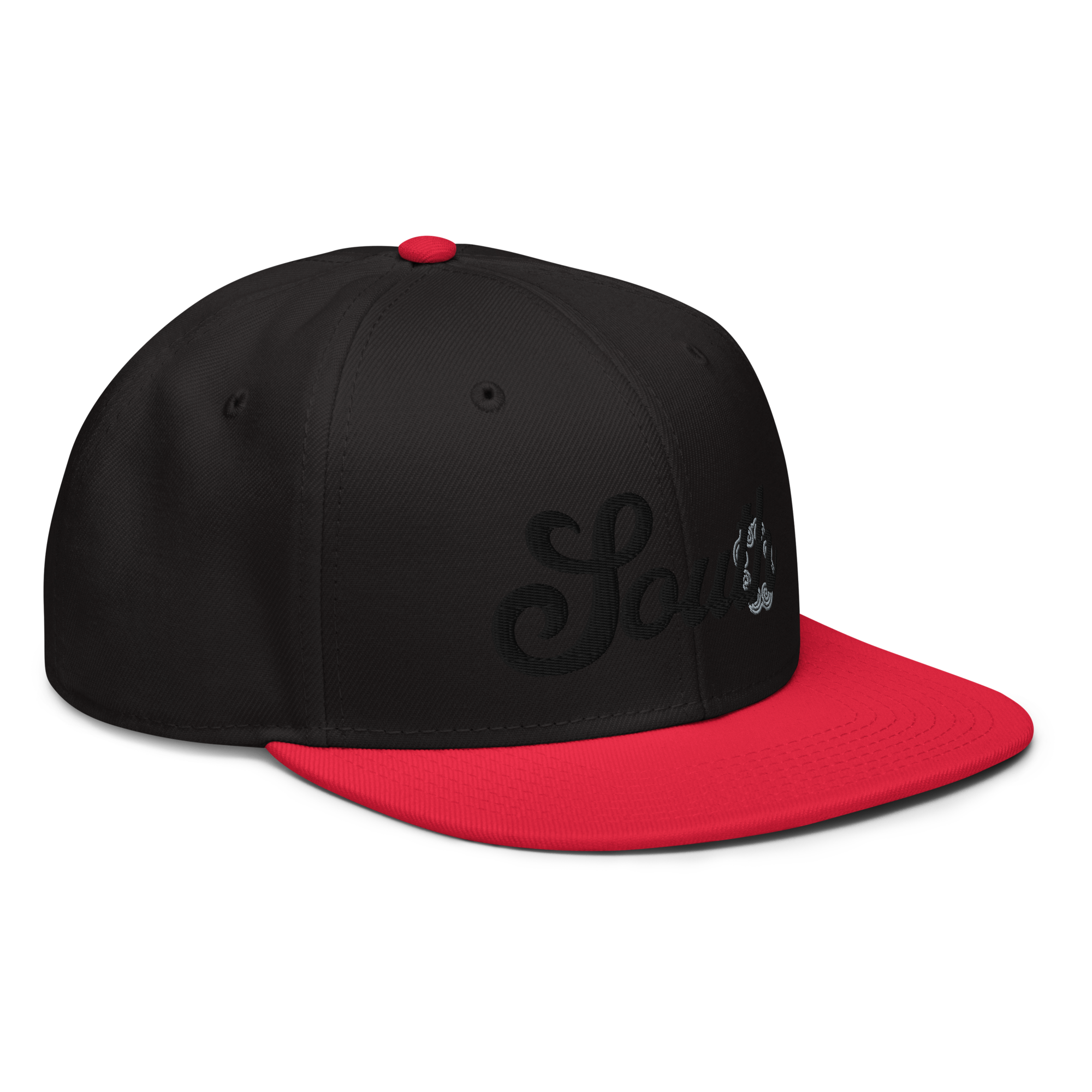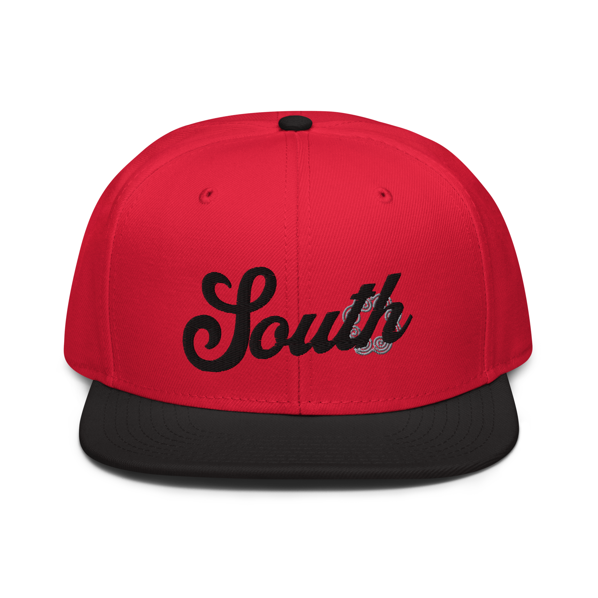 This snapback hat is perfect for any casual outfit. Adorned with a black South emblem against a gray Hmong elephant motif design that are embroidered, it is available in several different color schemes to match your style. It features a classic six-panel design with a flat brim that has a subtle gray color underneath and an adjustable strap in the back.