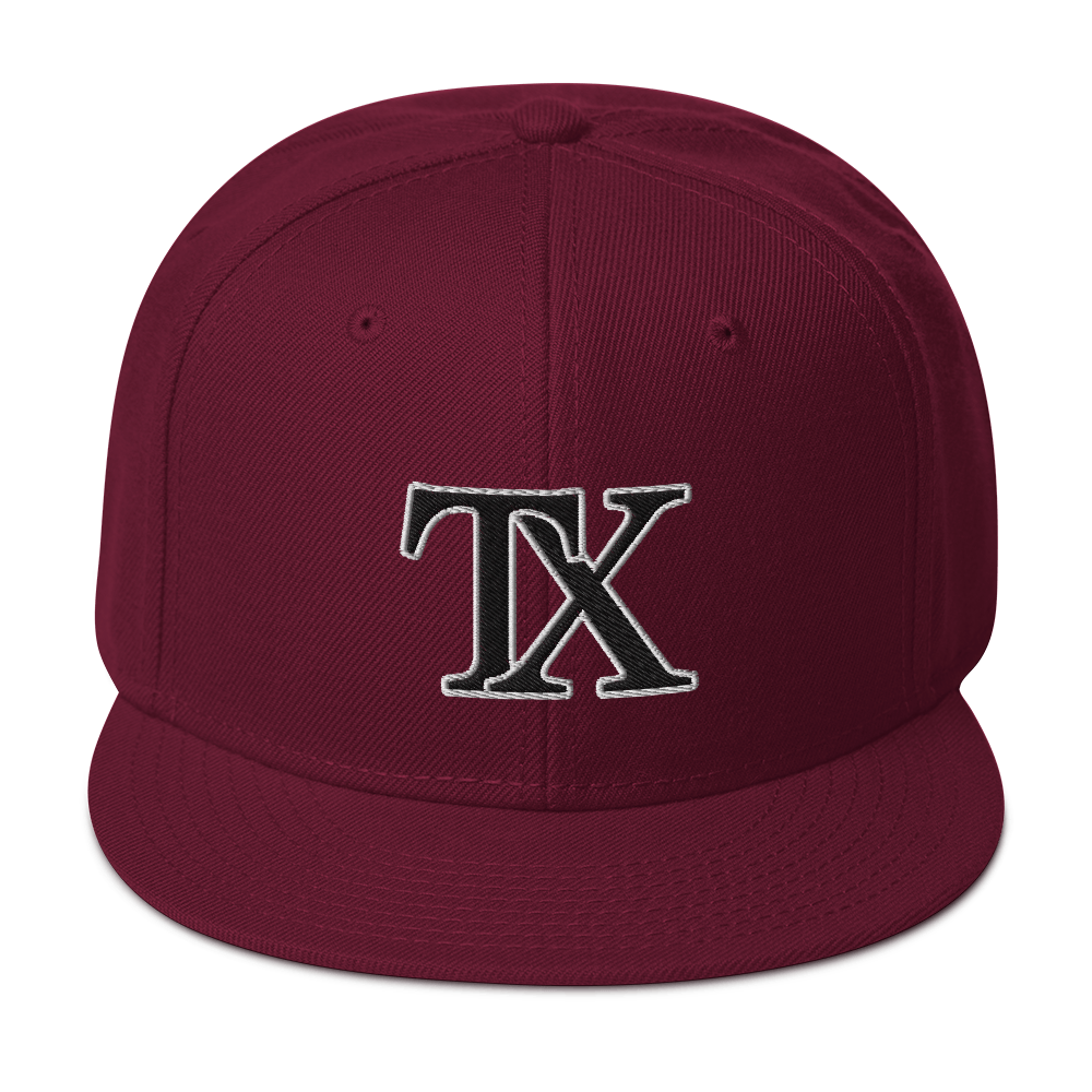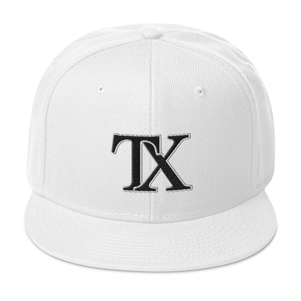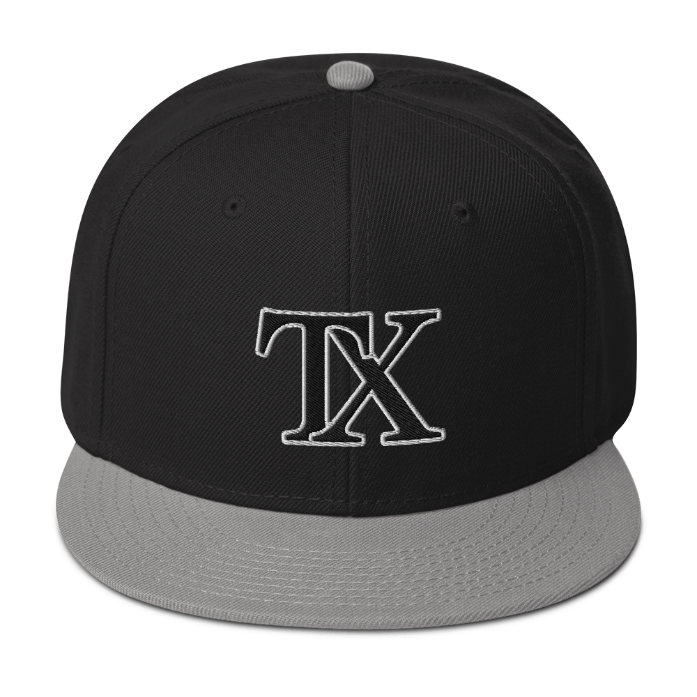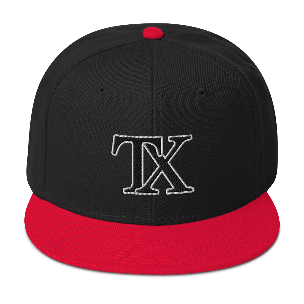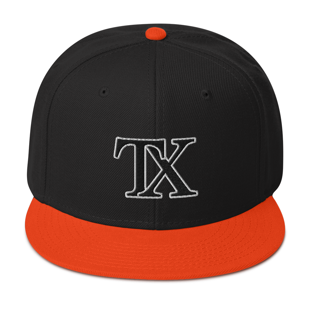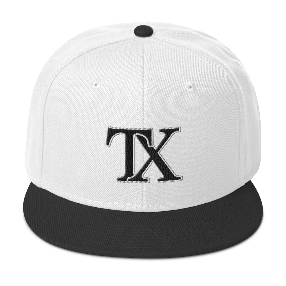 This snapback hat is perfect for any casual outfit. Embroidered with a black Texas abbreviation, it is available in several different color schemes to match your style. It features a classic six-panel design with a flat brim that has a subtle gray color underneath and an adjustable strap in the back.