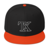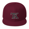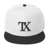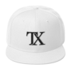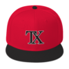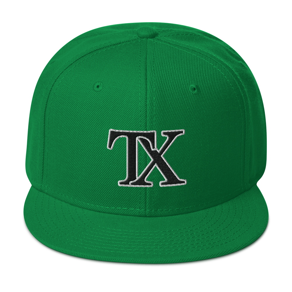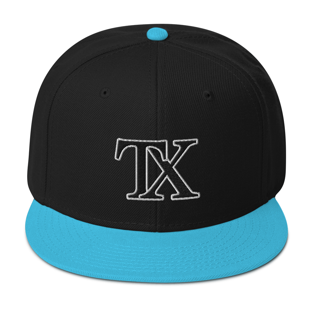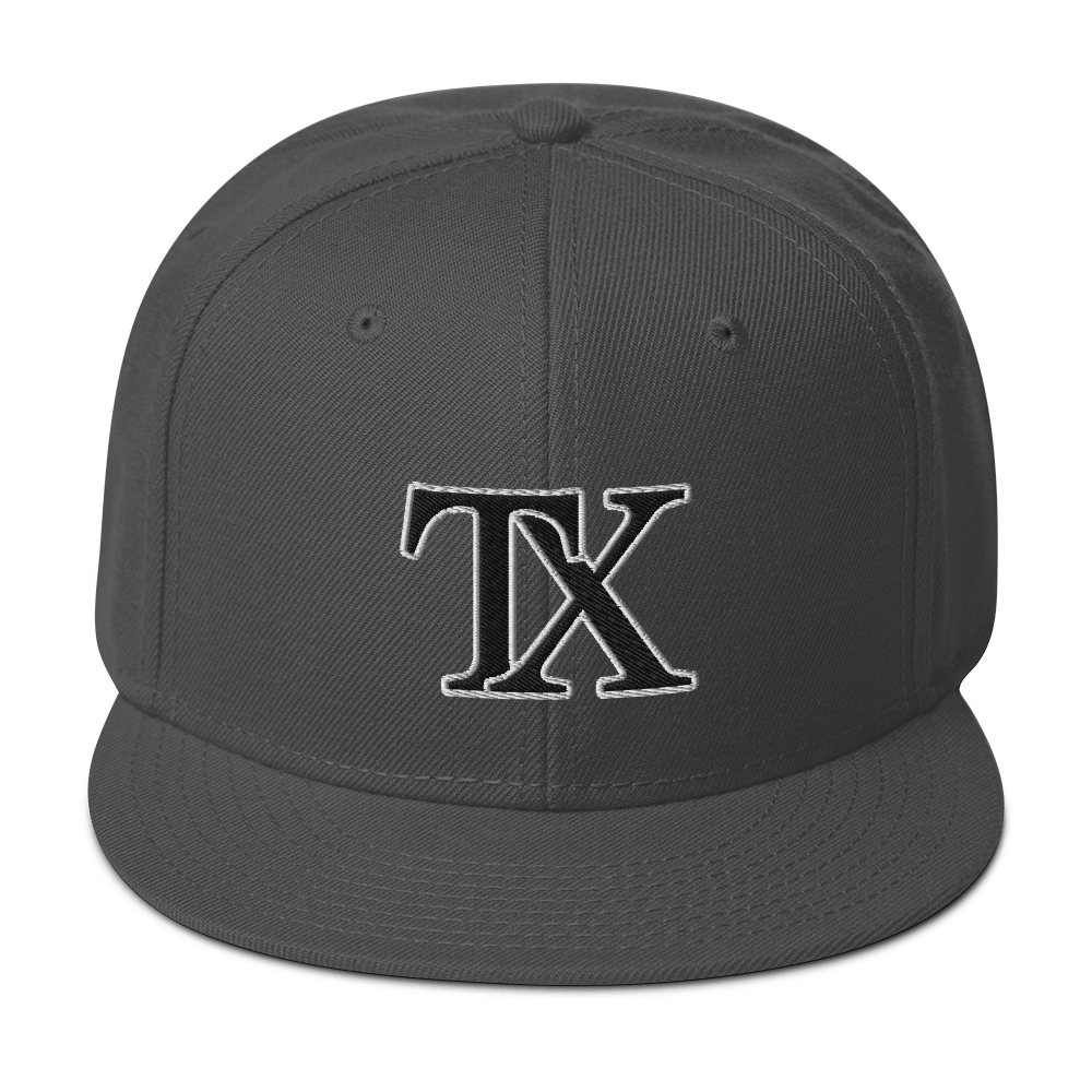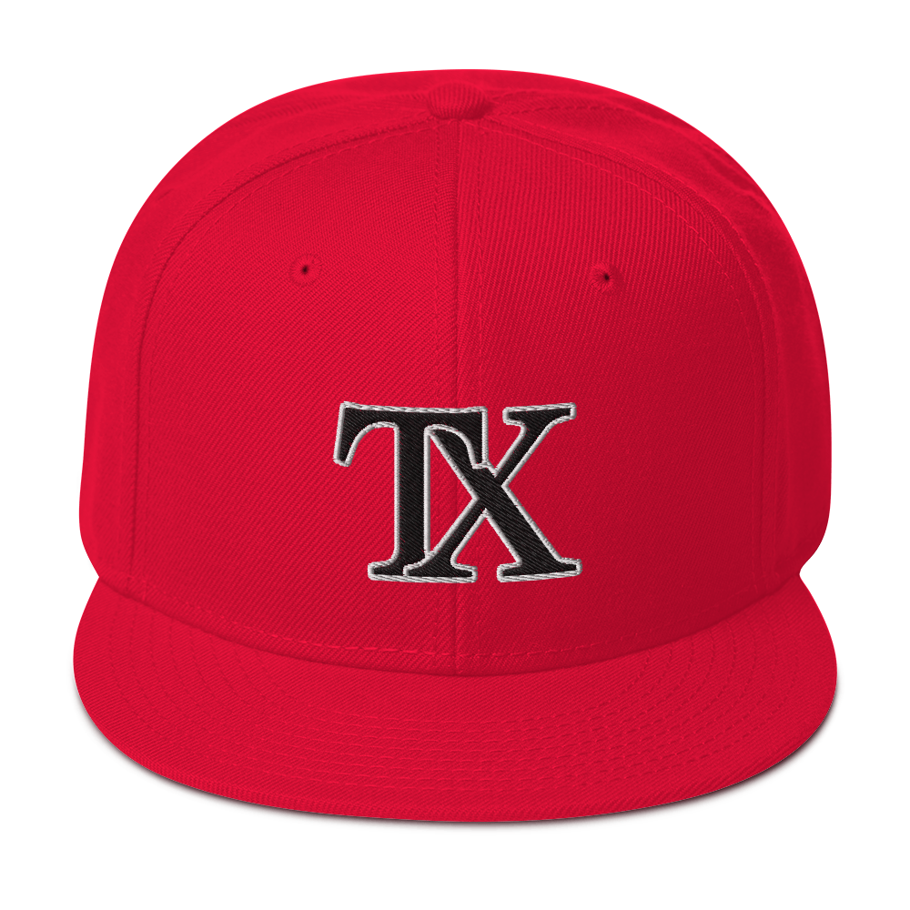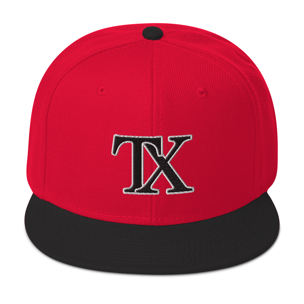 This snapback hat is perfect for any casual outfit. Embroidered with a black Texas abbreviation, it is available in several different color schemes to match your style. It features a classic six-panel design with a flat brim that has a subtle gray color underneath and an adjustable strap in the back.